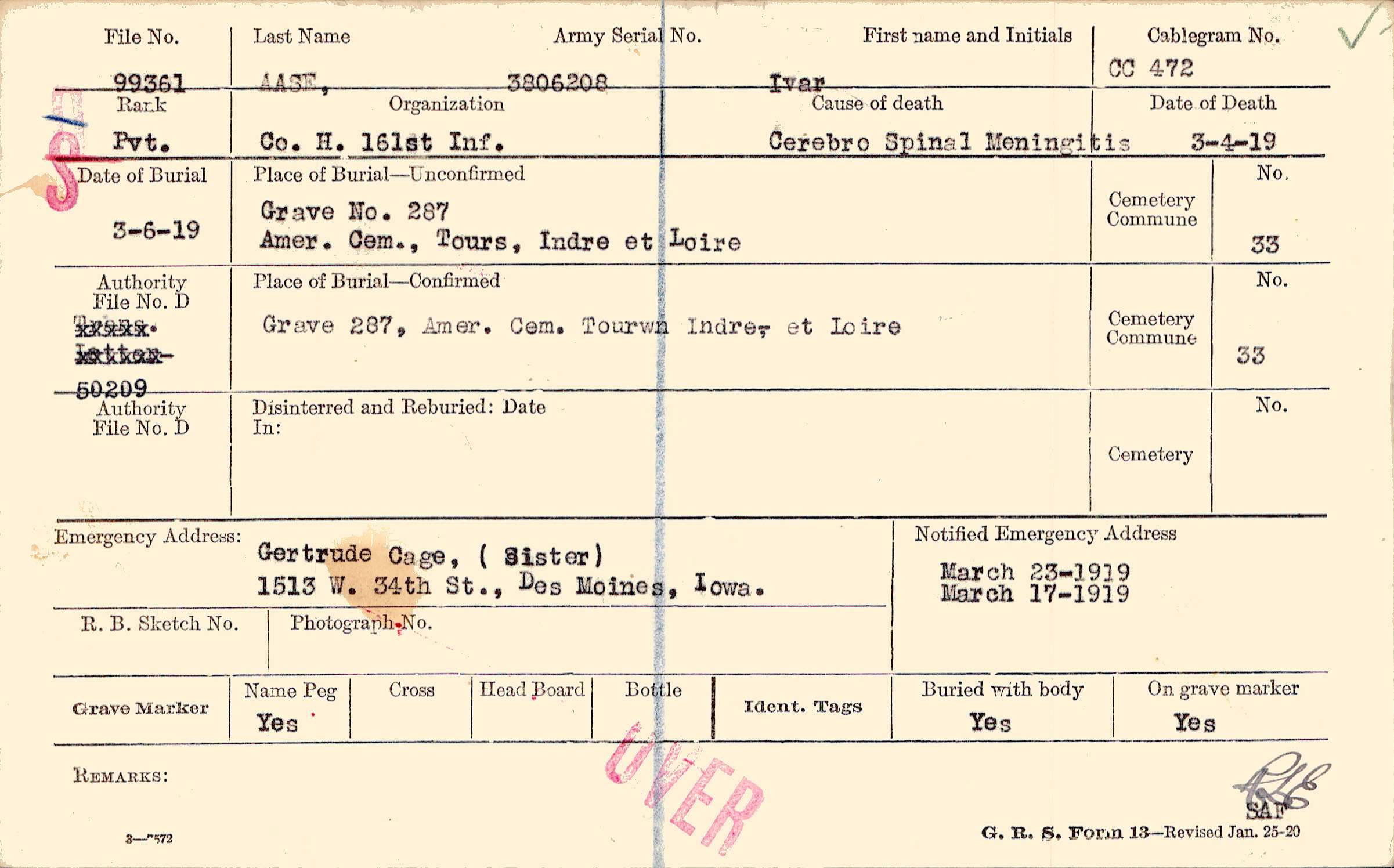 Grave 287, Amer. Cem. Tourwn Indre-et Loire