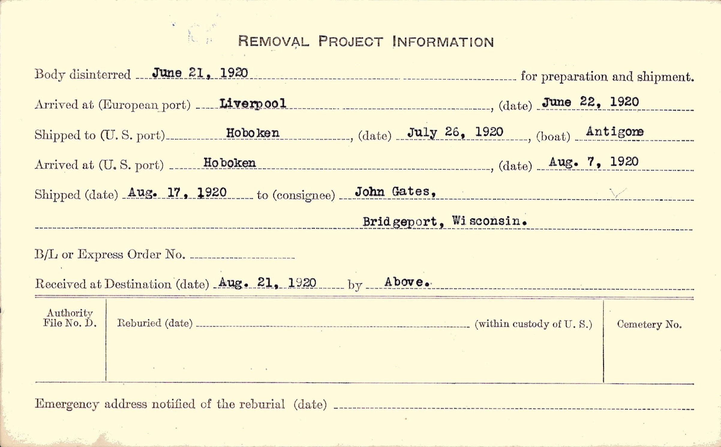 Grave #145, Amer. Plot, Row #6, Sect. F, Everton Cty., Liverpool, Lancs, England