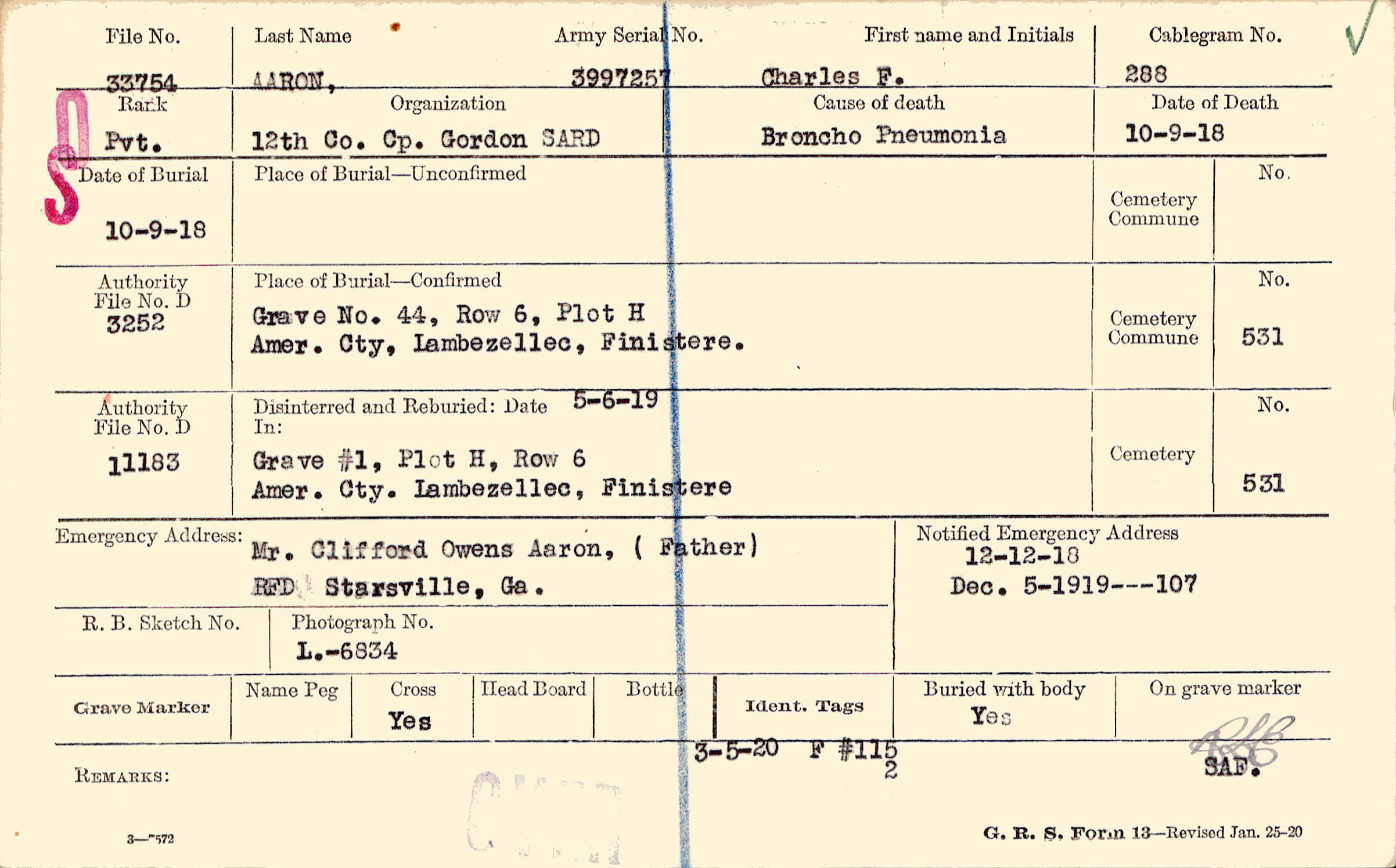 Grave 44, Row 6, Plot H, Amer. Cty, Lambezellec, Finistere.