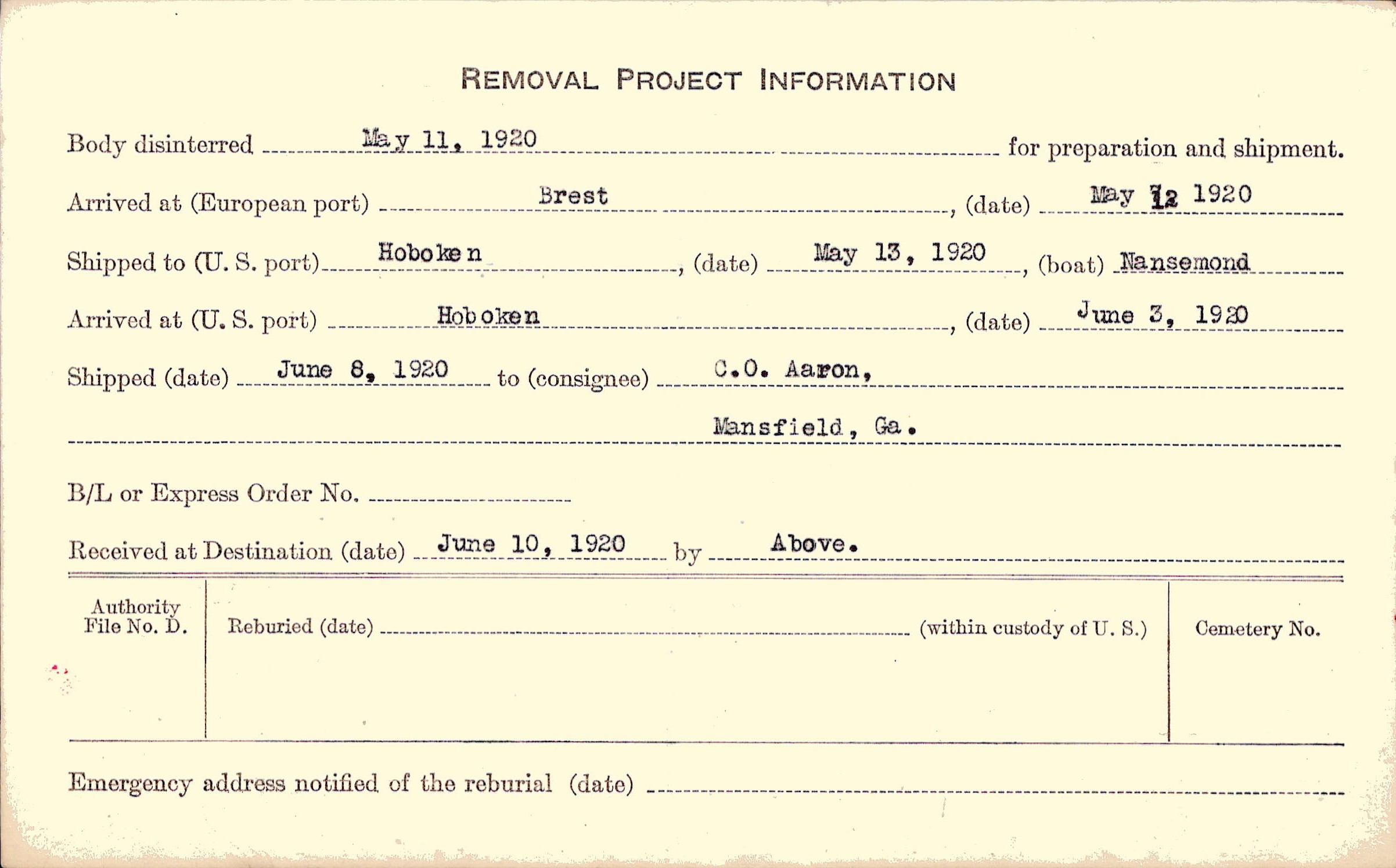 Mr. Clifford Owens Aaron, (Father), RFD Starsville, Ga.