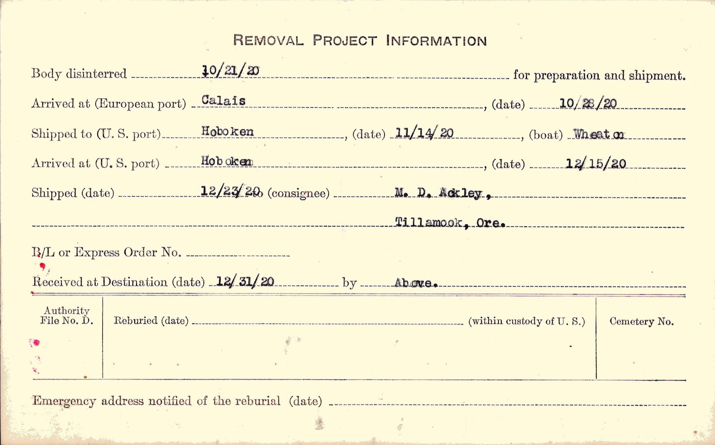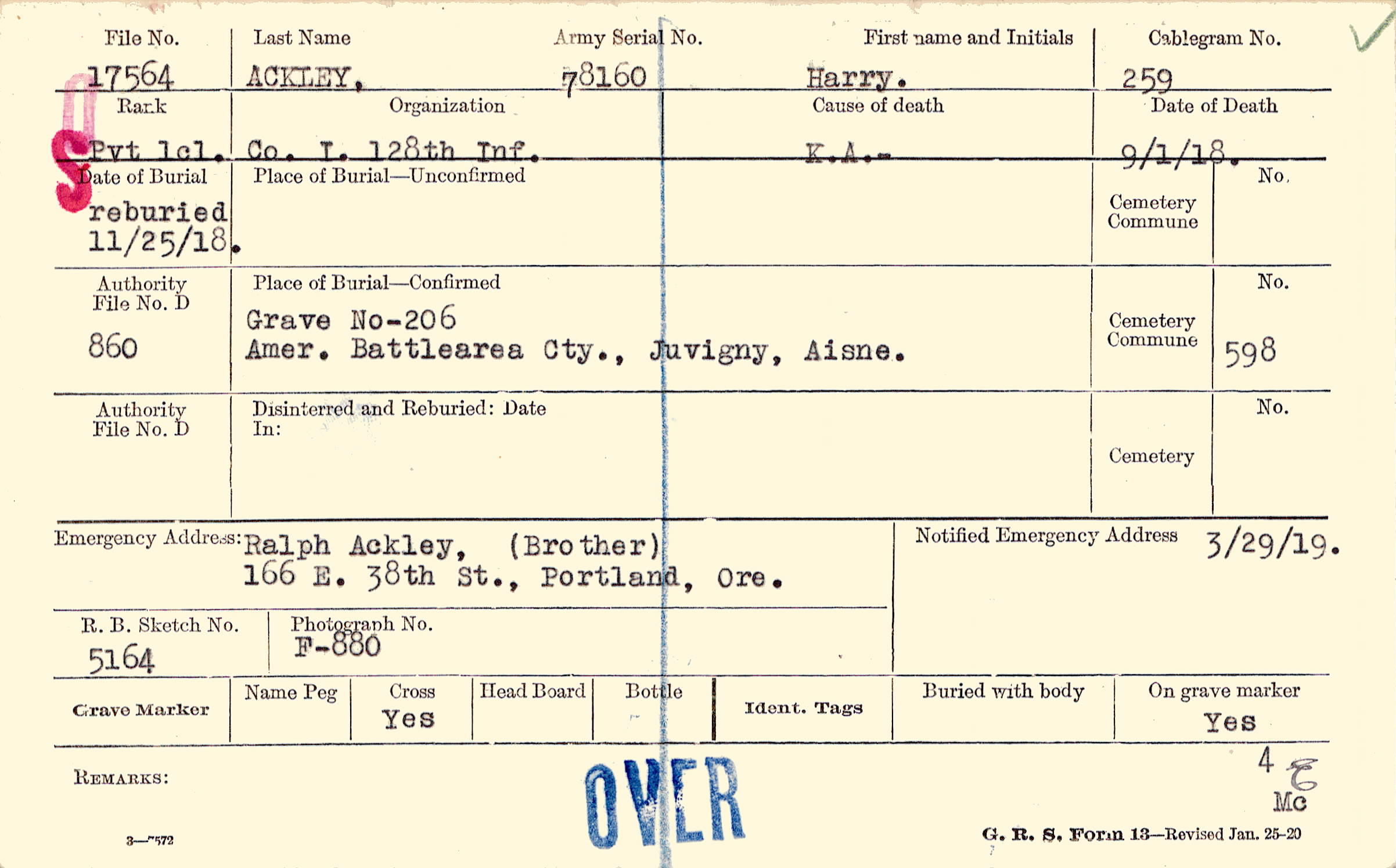 Ralph Ackley, (Brother), 166 E. 38th St., Portland, Ore.