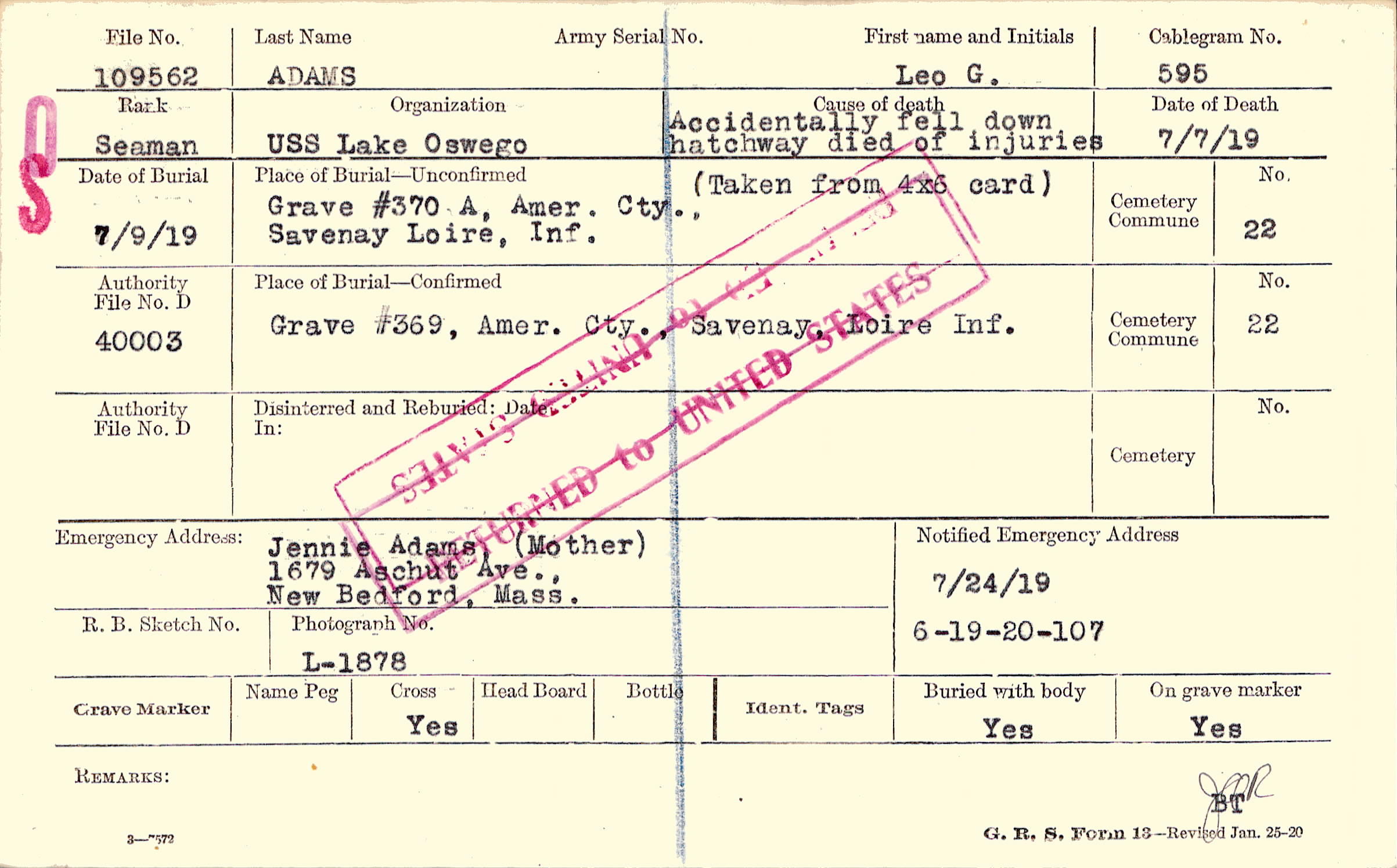 Grave #370 A, Amer. Cty, Savenay Loire, Inf.
