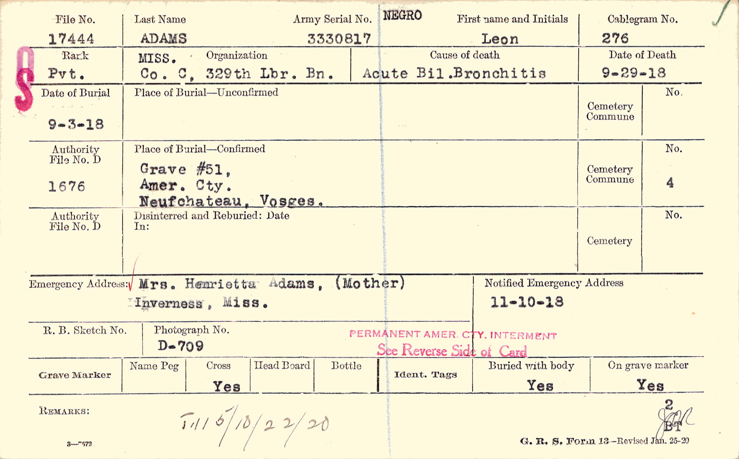 Grave #51, Amer. Cty. Neufchateau, Vosges.