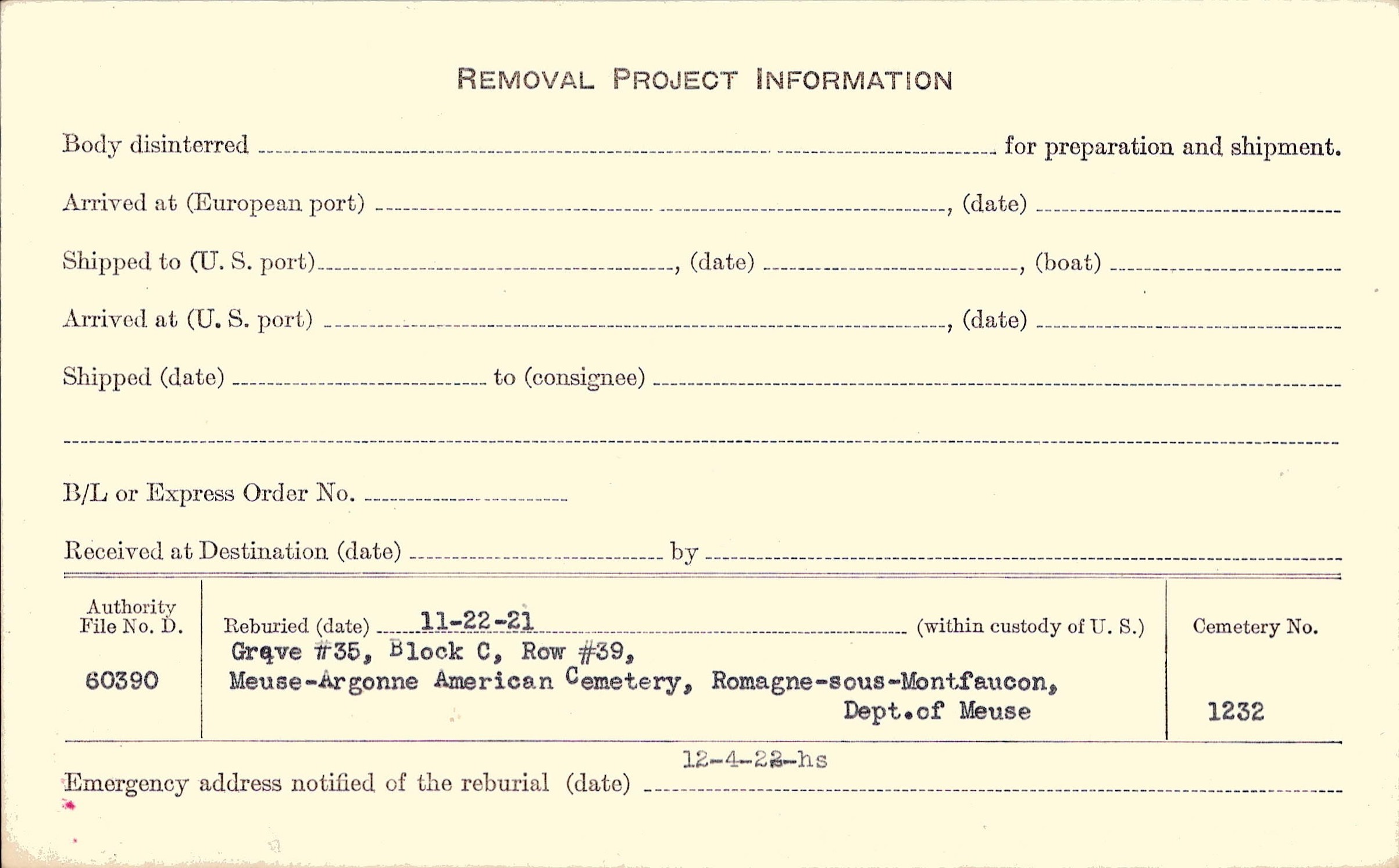 | Permanent Burial in Foreign Cemetery |
