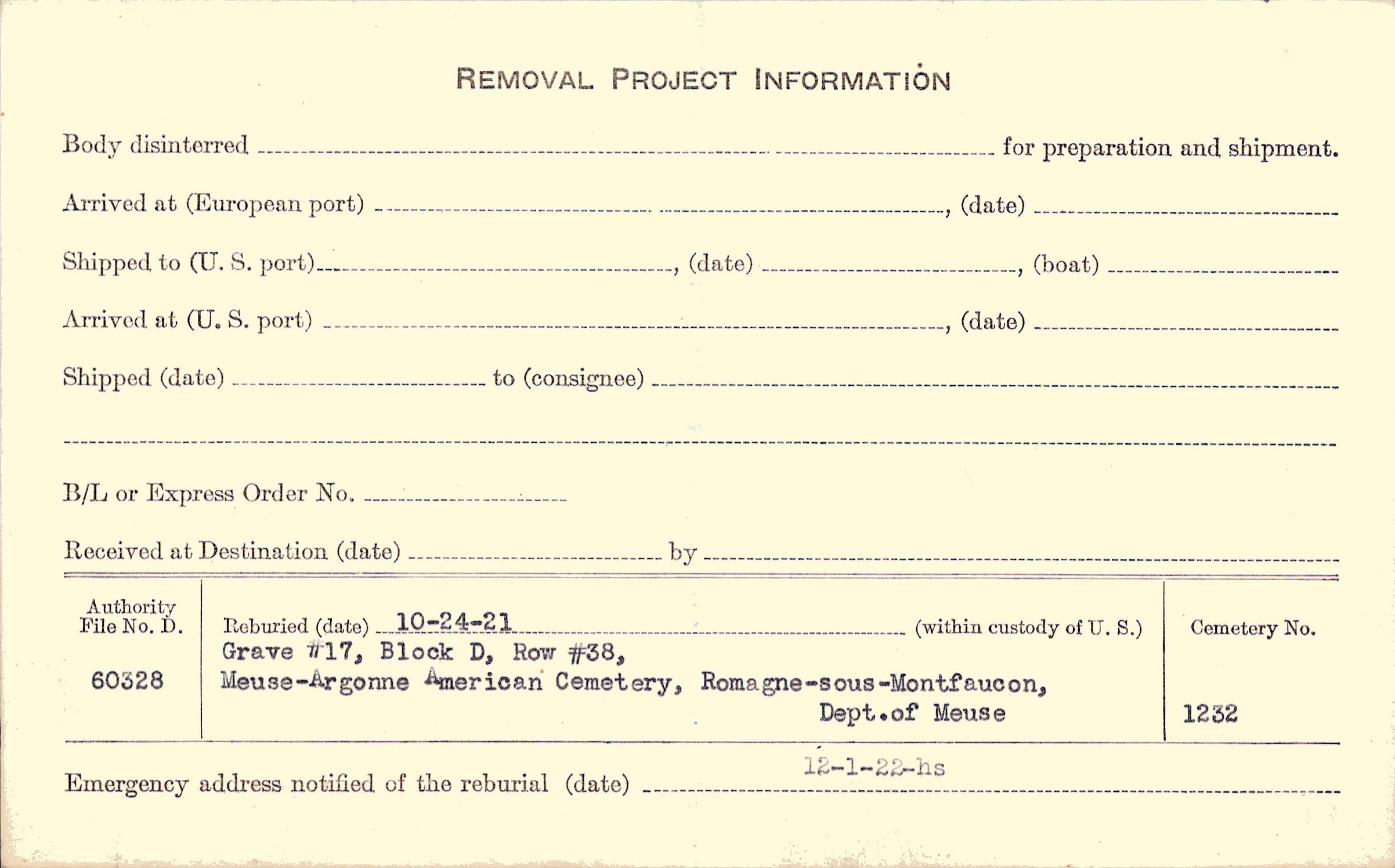 | Permanent Burial in Foreign Cemetery |