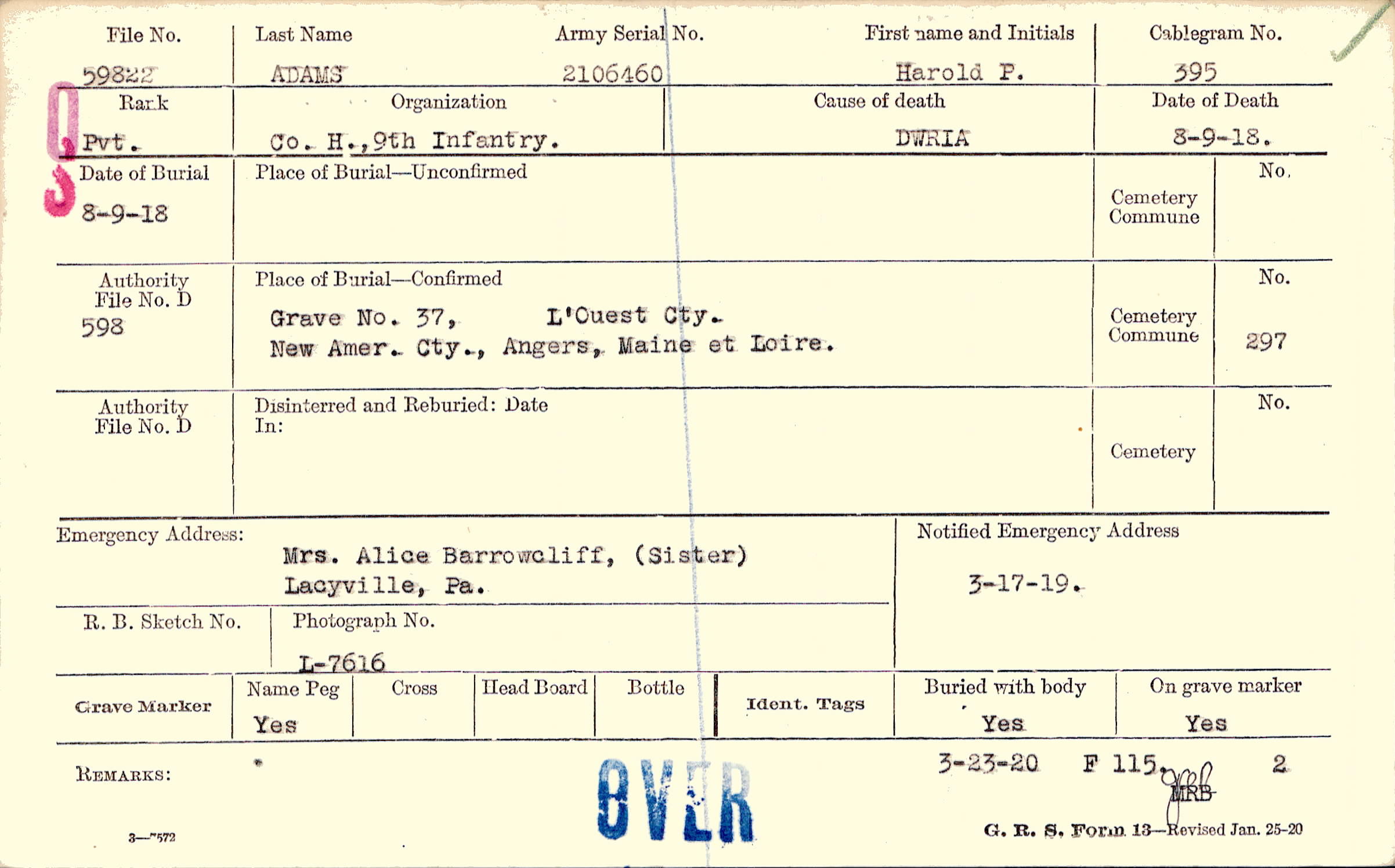 | Reburied (date): |