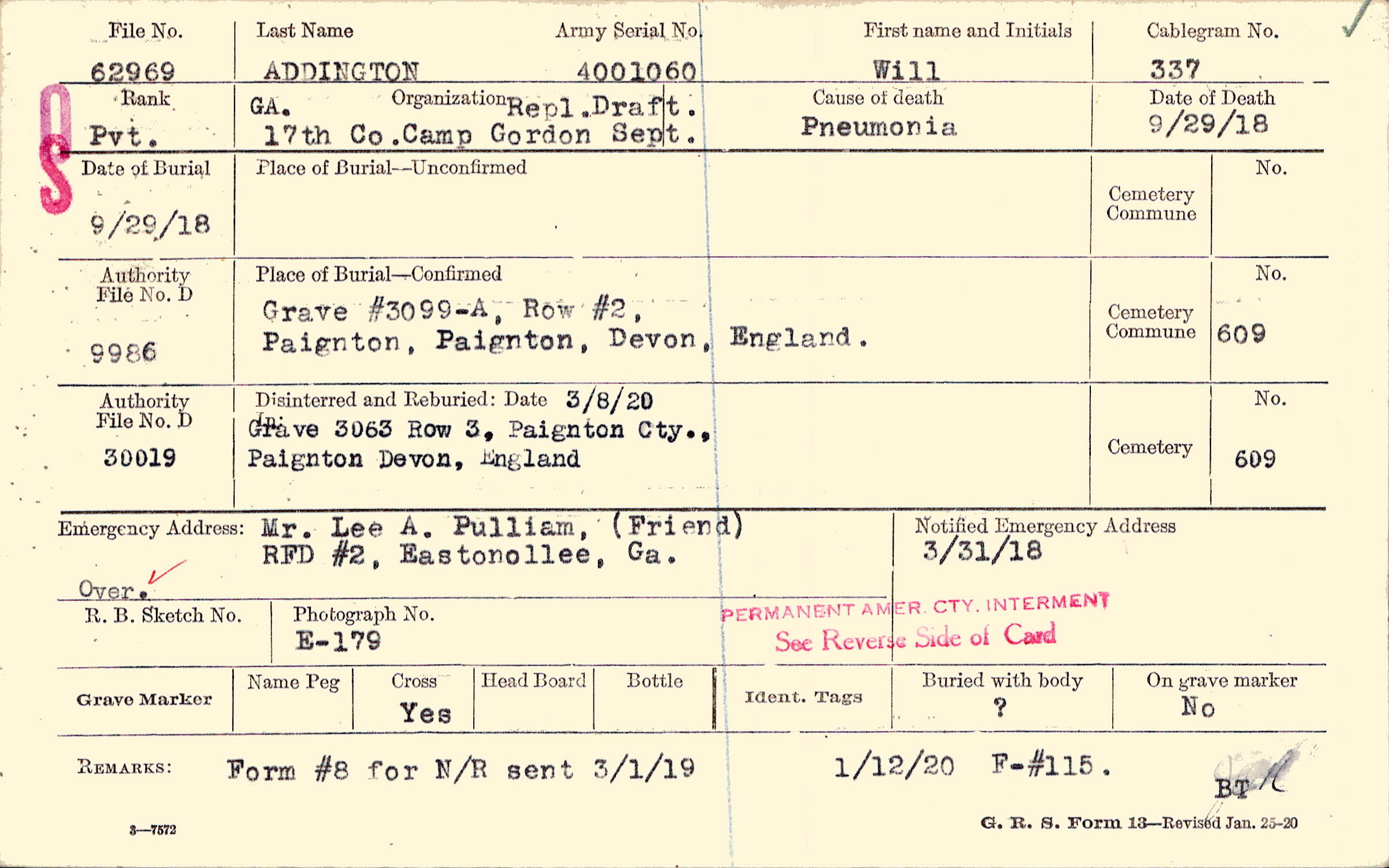 | Permanent Burial in Foreign Cemetery |