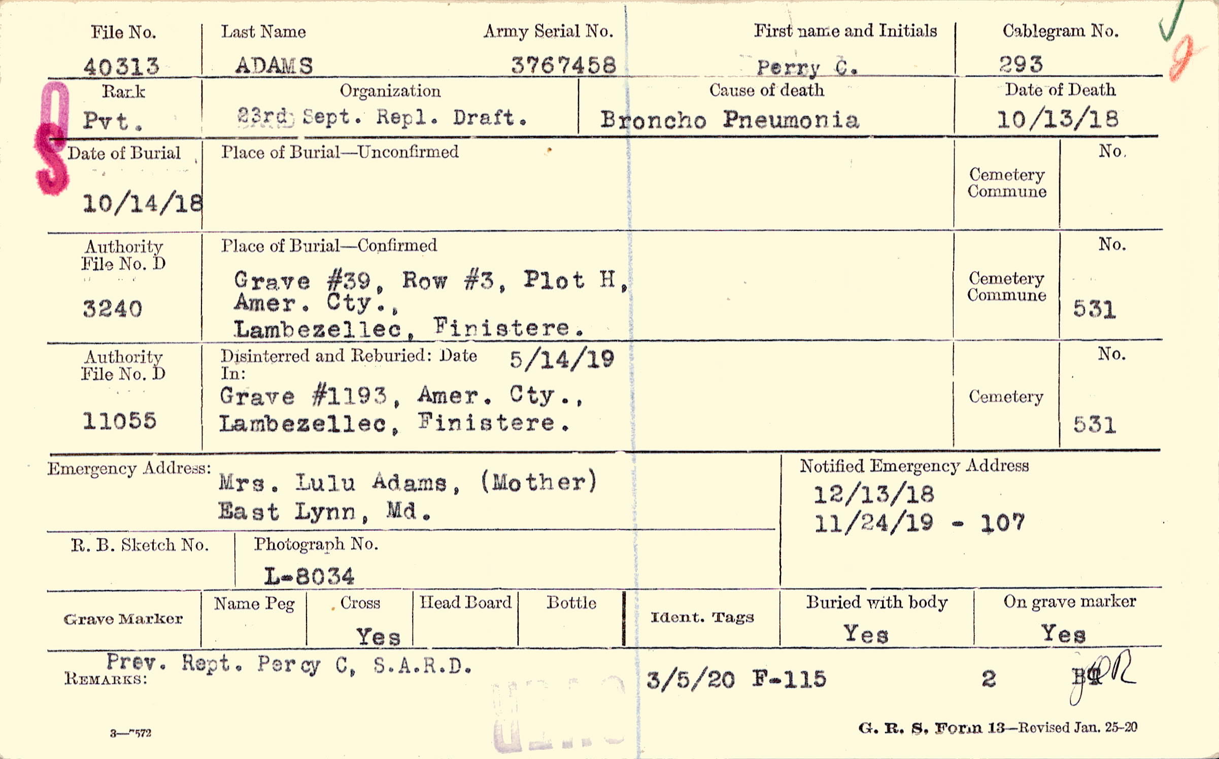 12/13/1918, Form 107: 11/24/1919