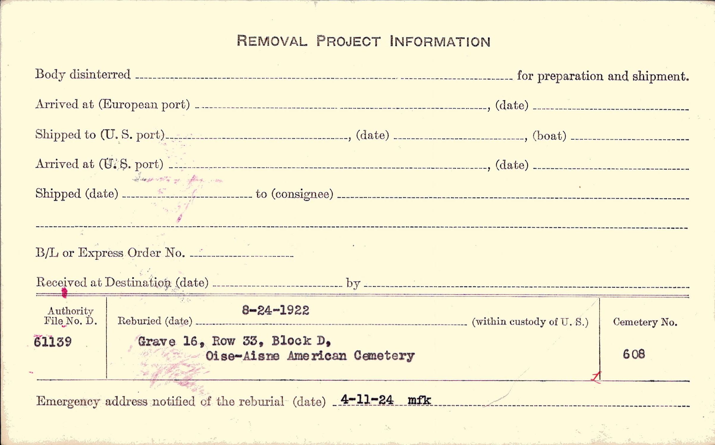 | Reburied (date): |