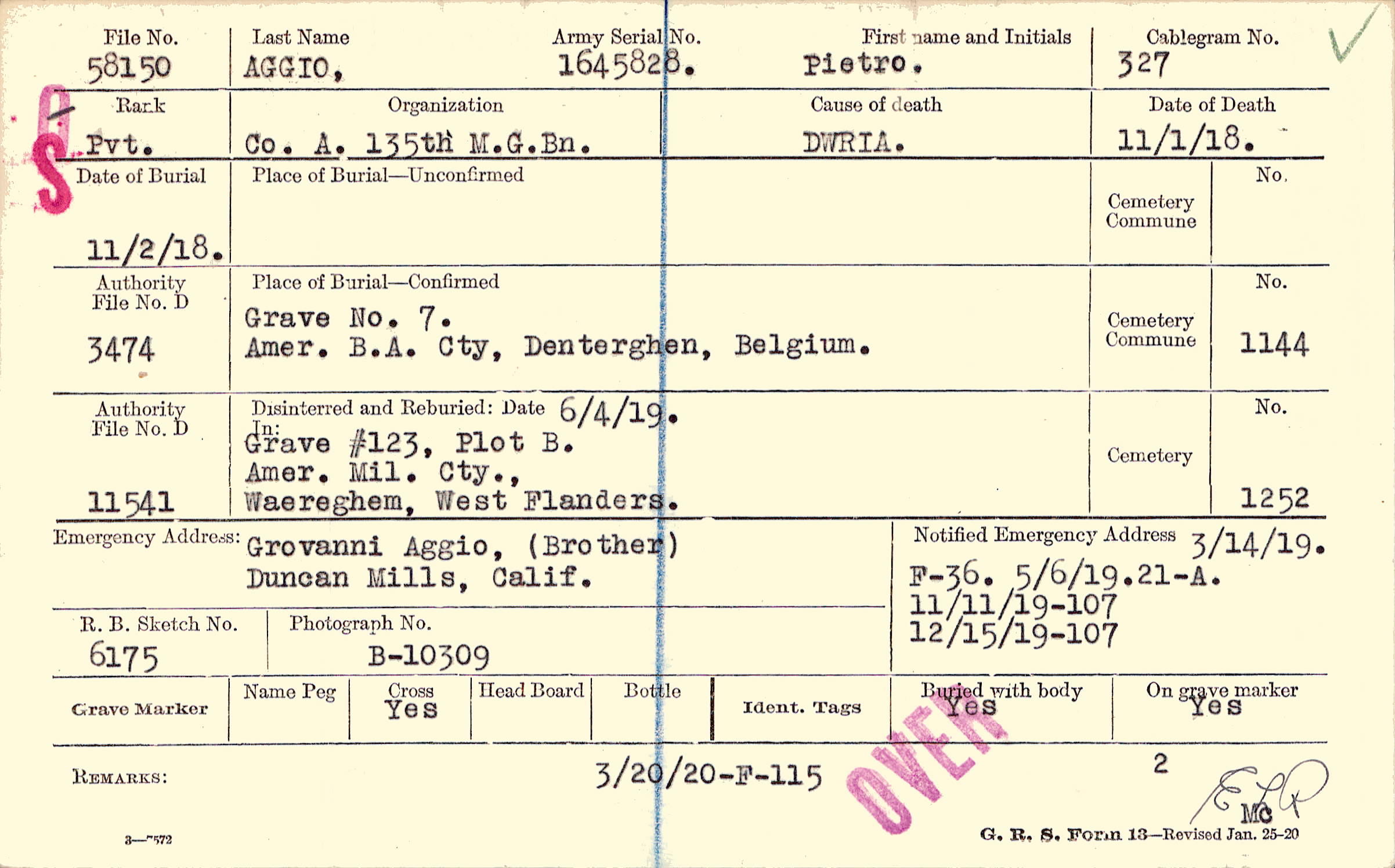 Army Serial No. |