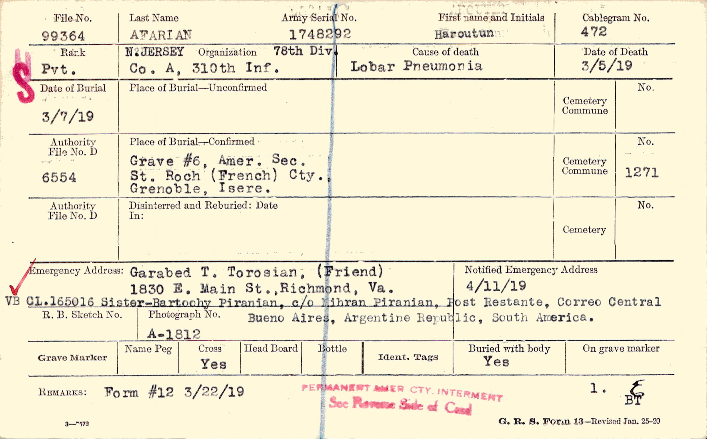 Grave #6, Amer. Sec., St. Roch (French) Cty., Grenoble, Isere.