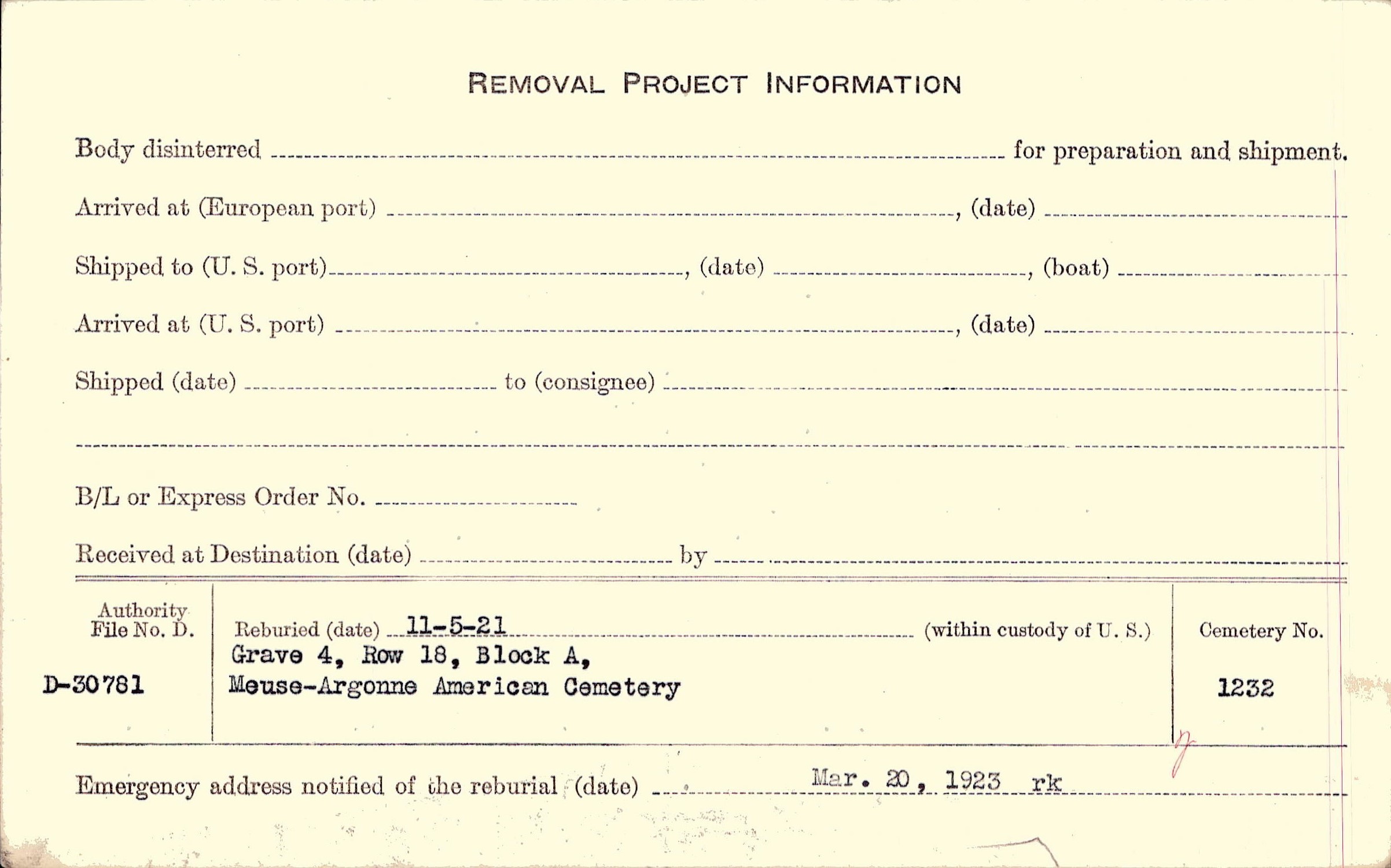 11/17/1918, 5/8/1919, Form 107: 1/17/1920
