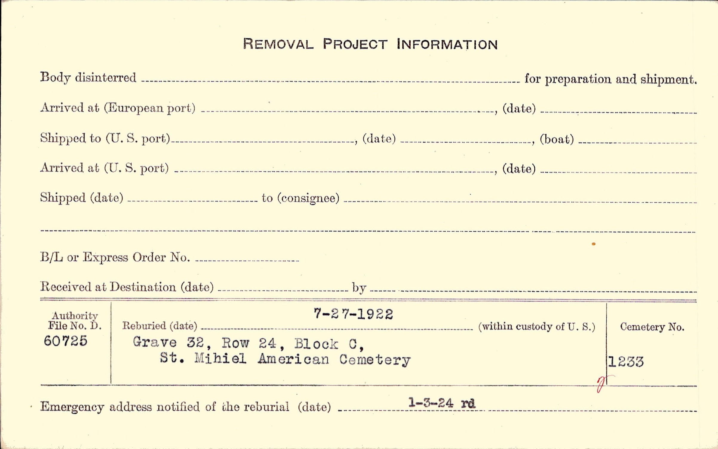 | Permanent Burial in Foreign Cemetery |