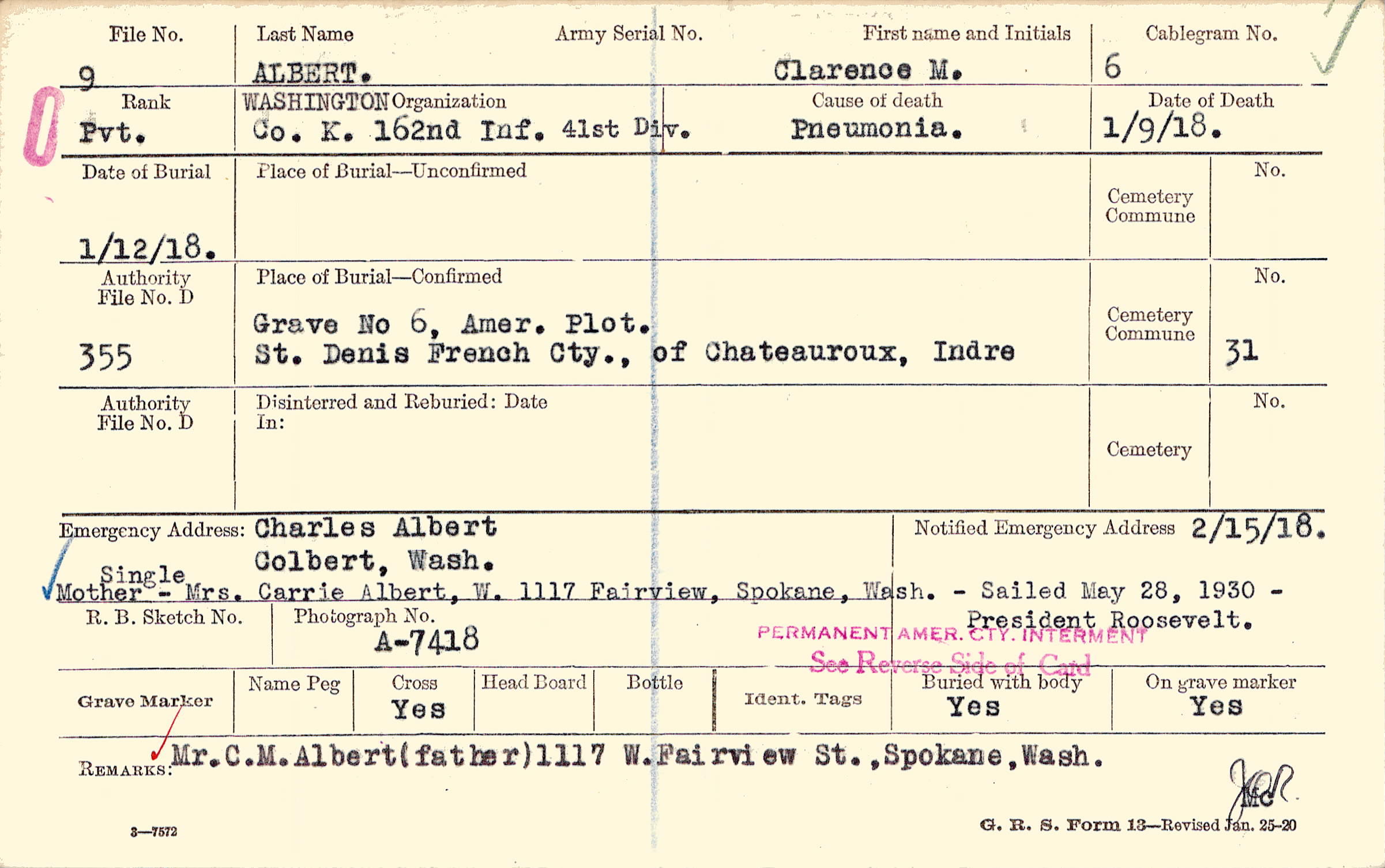 Mr. C.M. Albert (father) 1117 W. Fairview St., Spokane, Wash., Mr. C.M.Albert(father)1117 W.Fairview St., Spokane, Wash.
