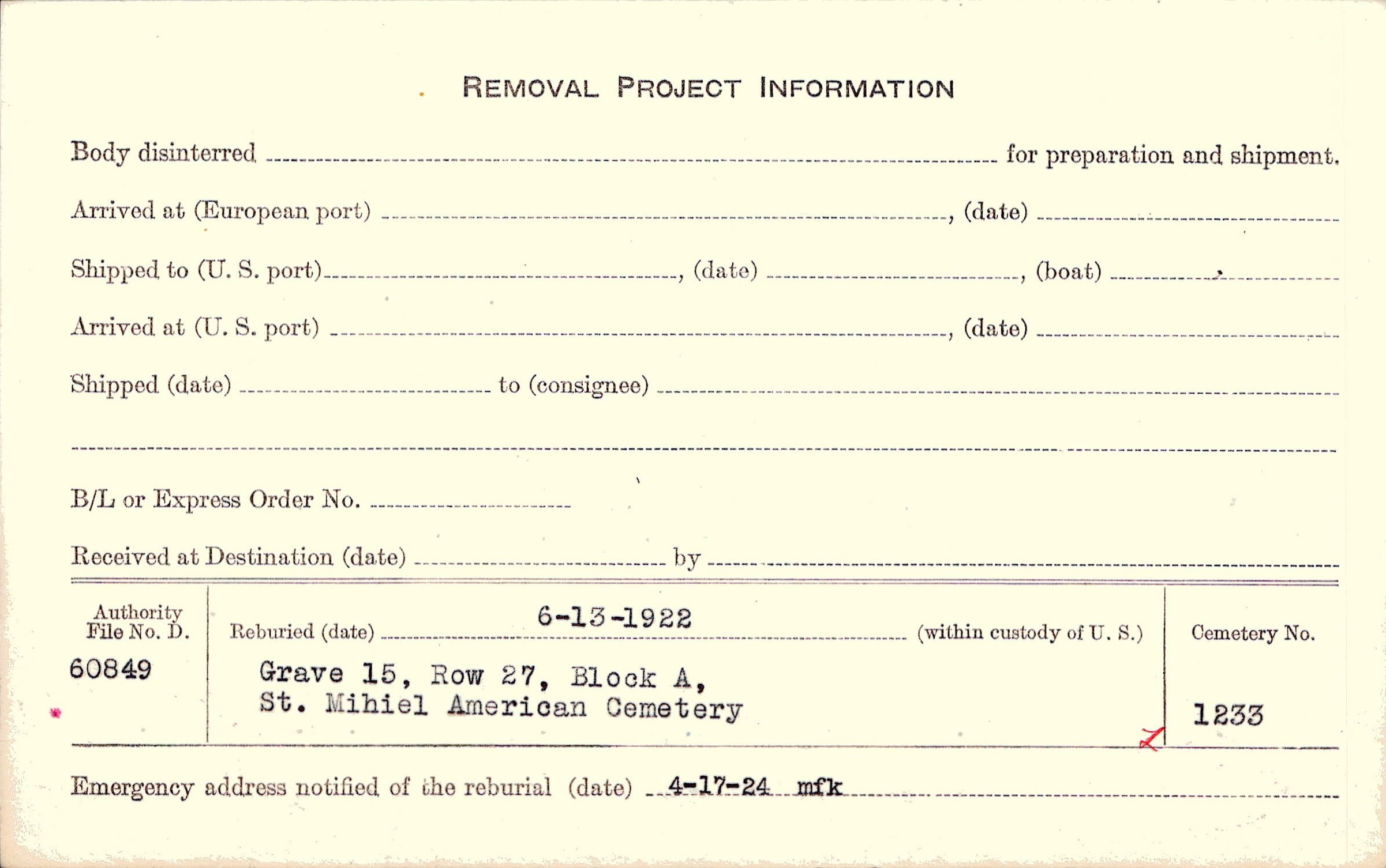 Grave No 6, Amer. Plot, St. Denis French Cty., of Chateauroux, Indre