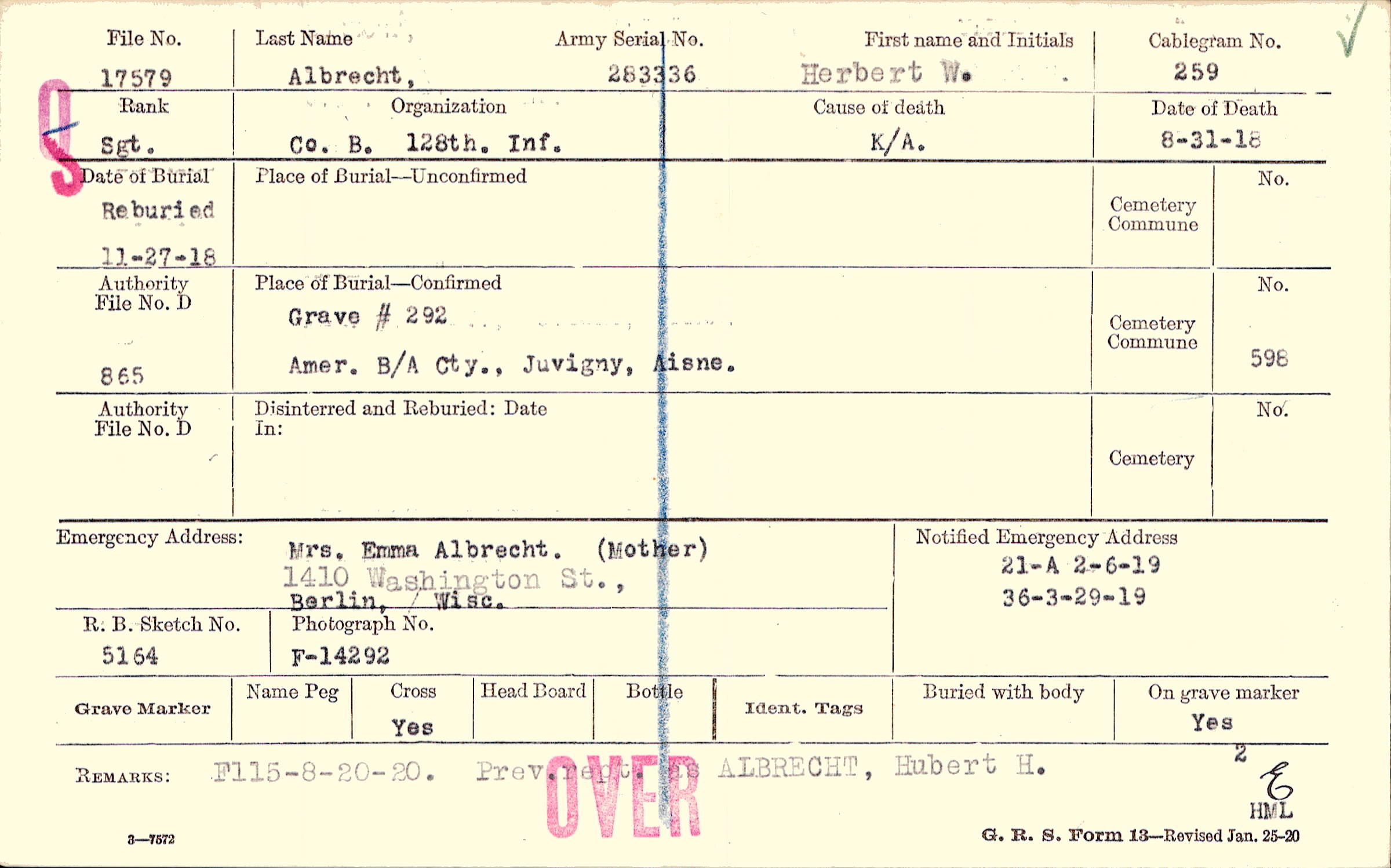 Prev. rept. as ALBRECHT, Hubert H., F115-8-20-20