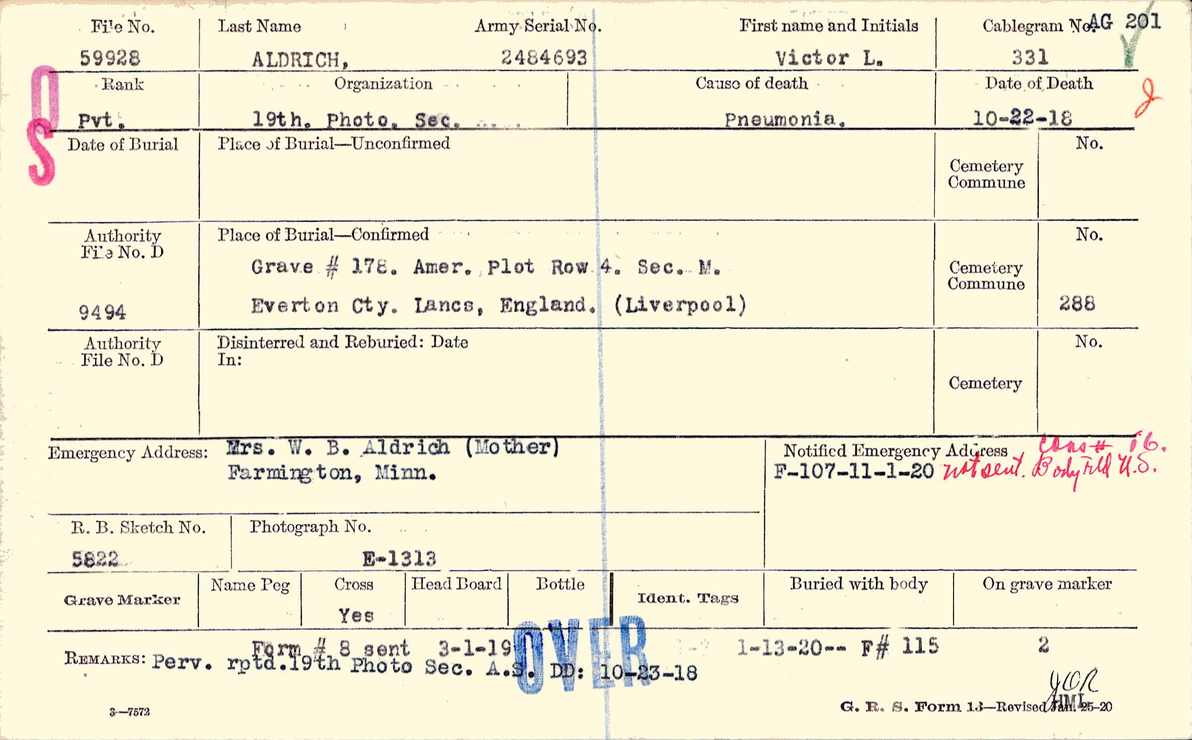 Grave #178, Amer., Plot Row 4, Sec. M., Everton Cty., Lancs, England, Liverpool