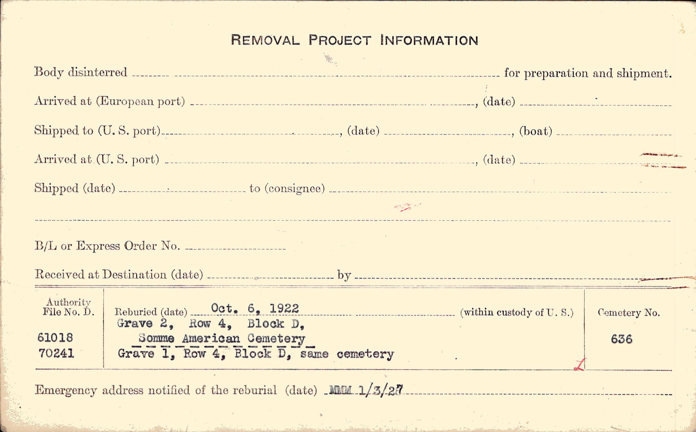 Prior Burial in Foreign Cemetery |