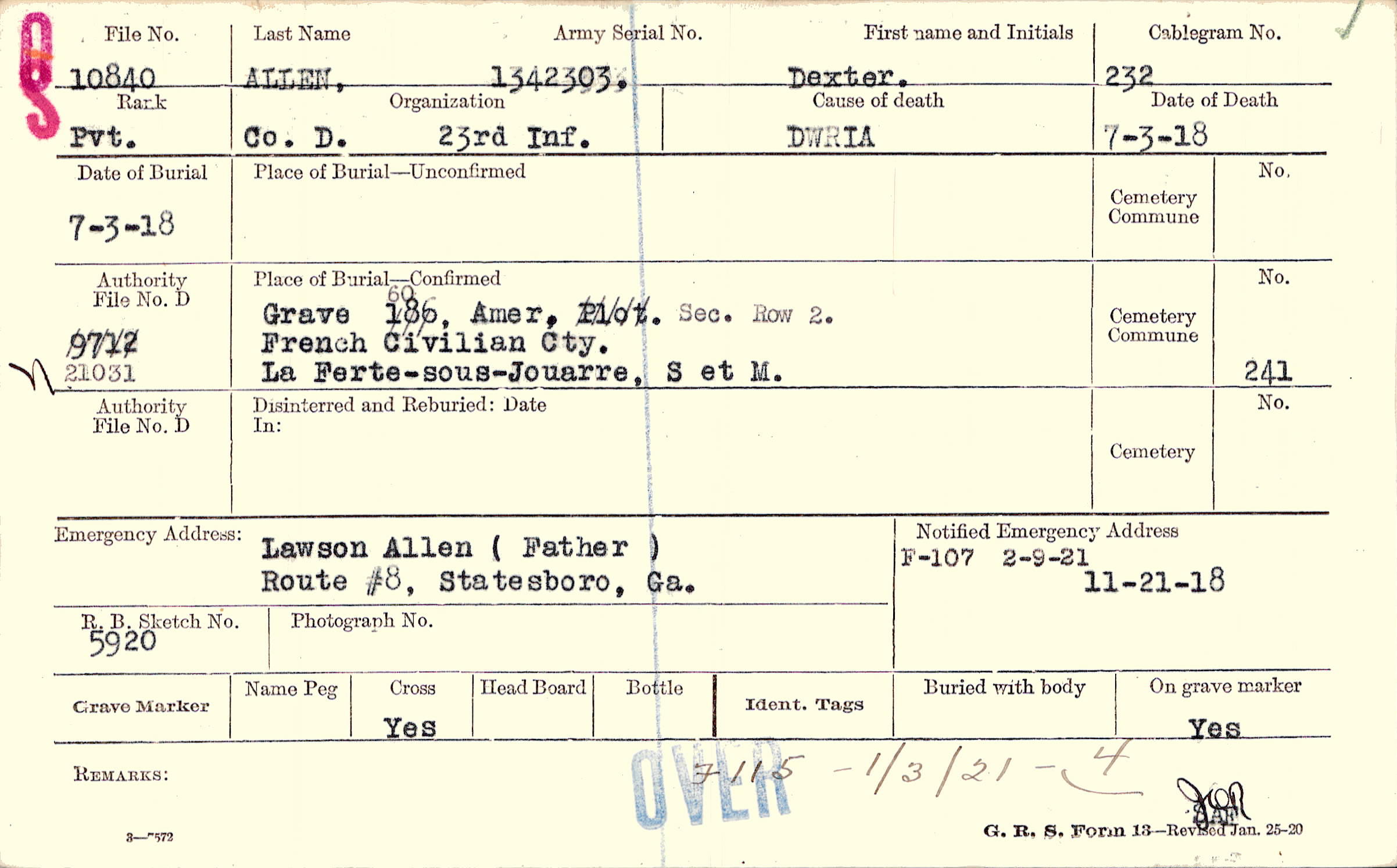 Grave 60, Amer. Sec., Row 2, French Civilian Cty., La Ferte-sous-Jouarre, S et M