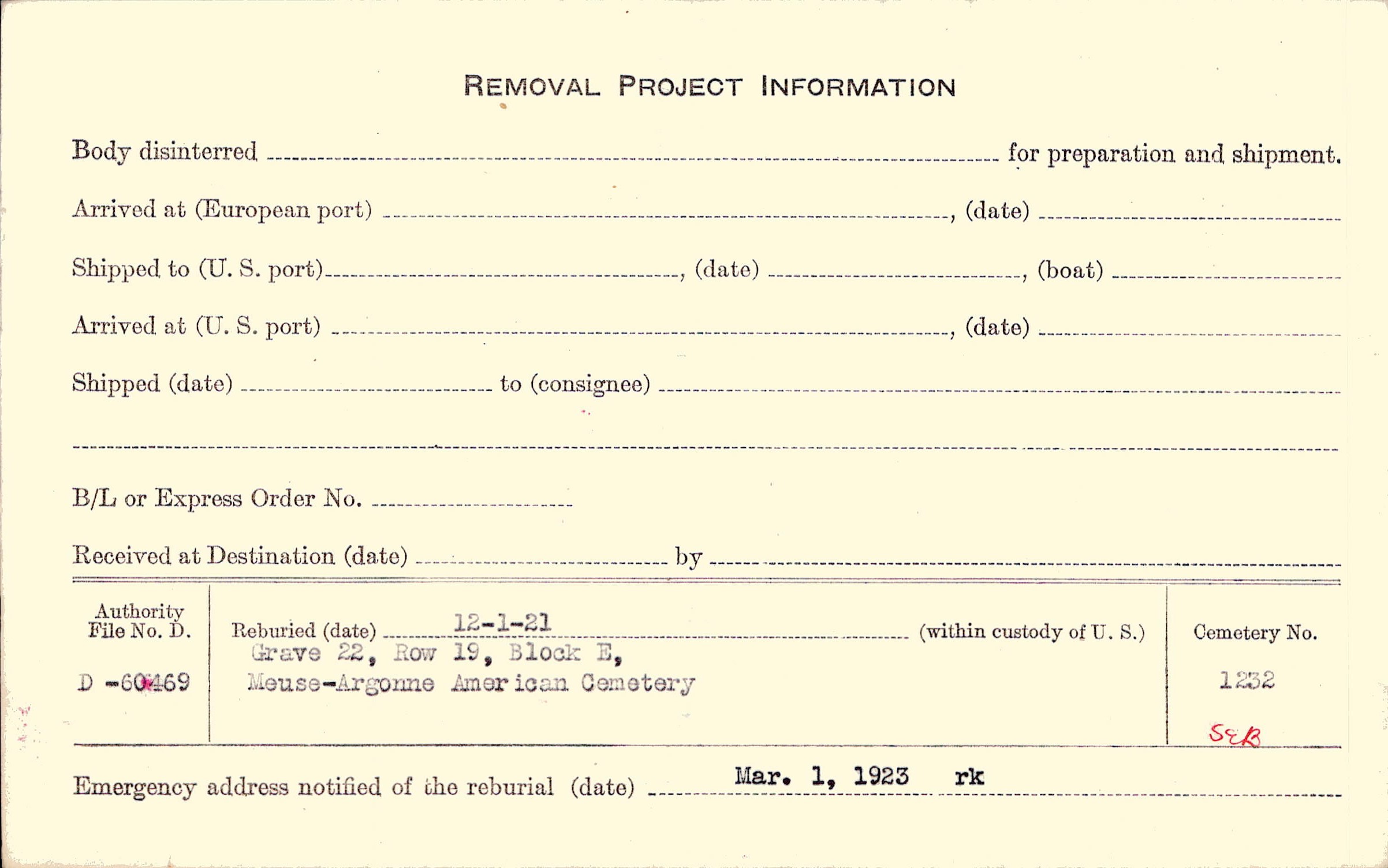 | Permanent Burial in Foreign Cemetery |