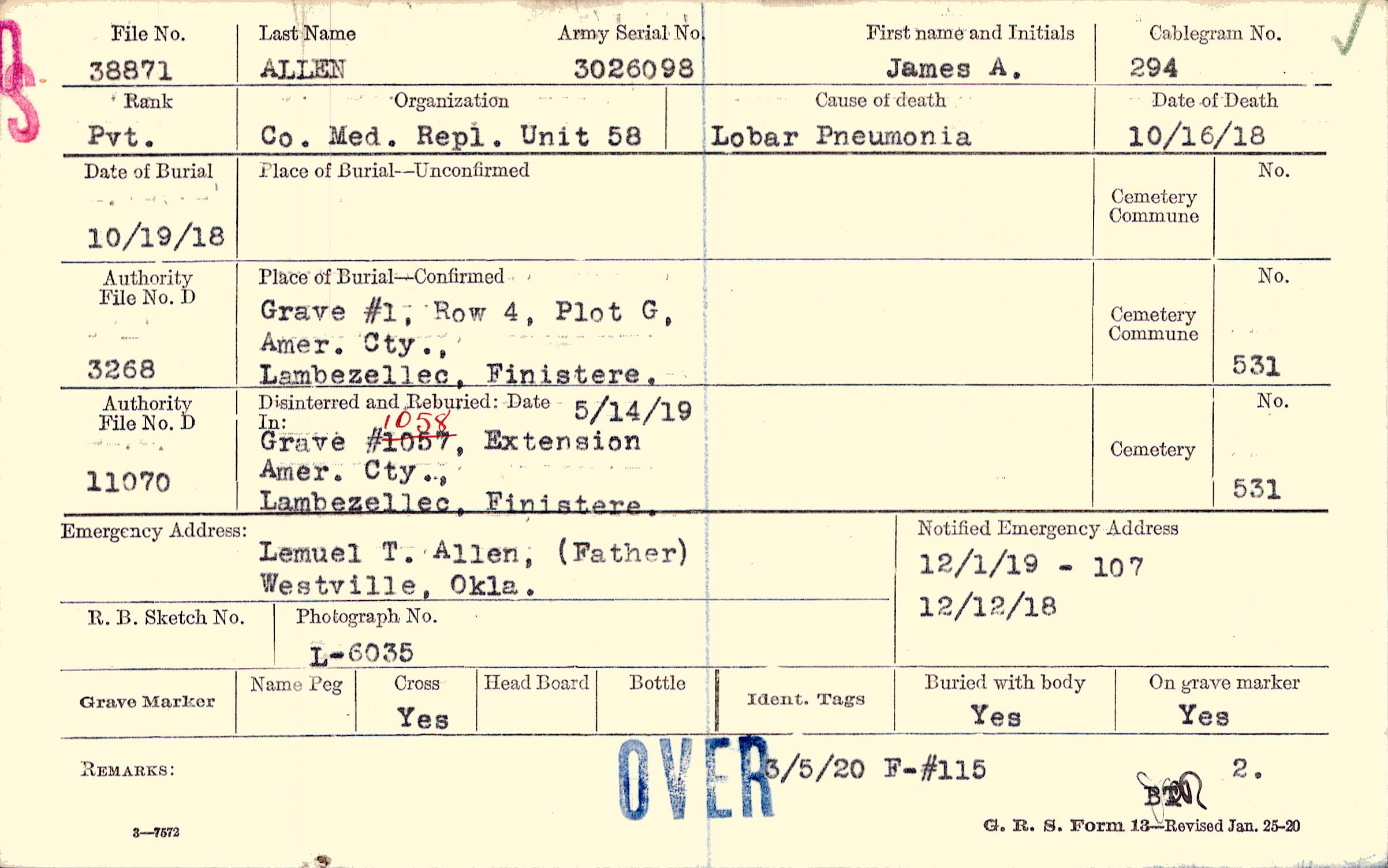 Grave 1058, American Cemetery, Lambézellec, Finistère, Extension
