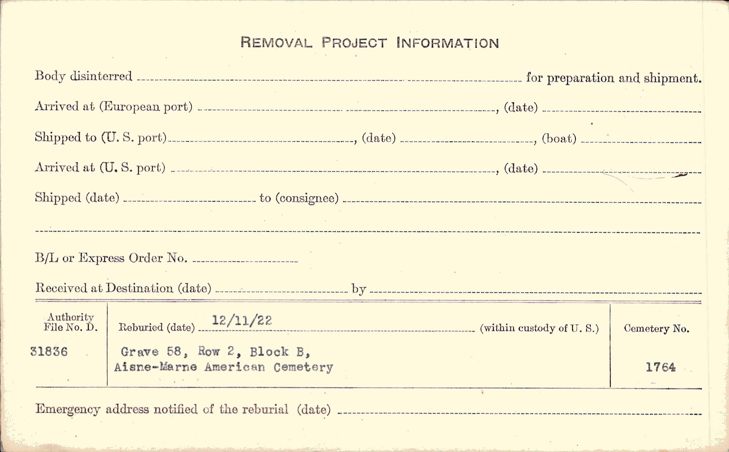 | Permanent Burial in Foreign Cemetery |