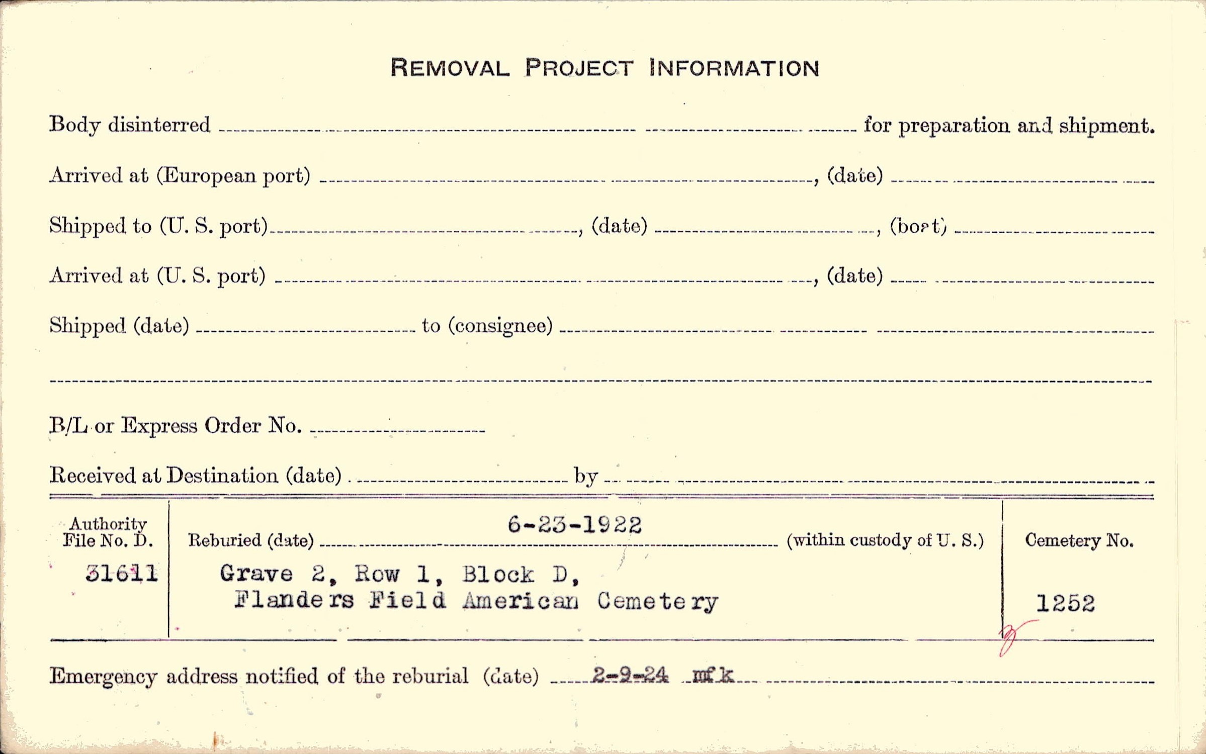 | Permanent Burial in Foreign Cemetery |