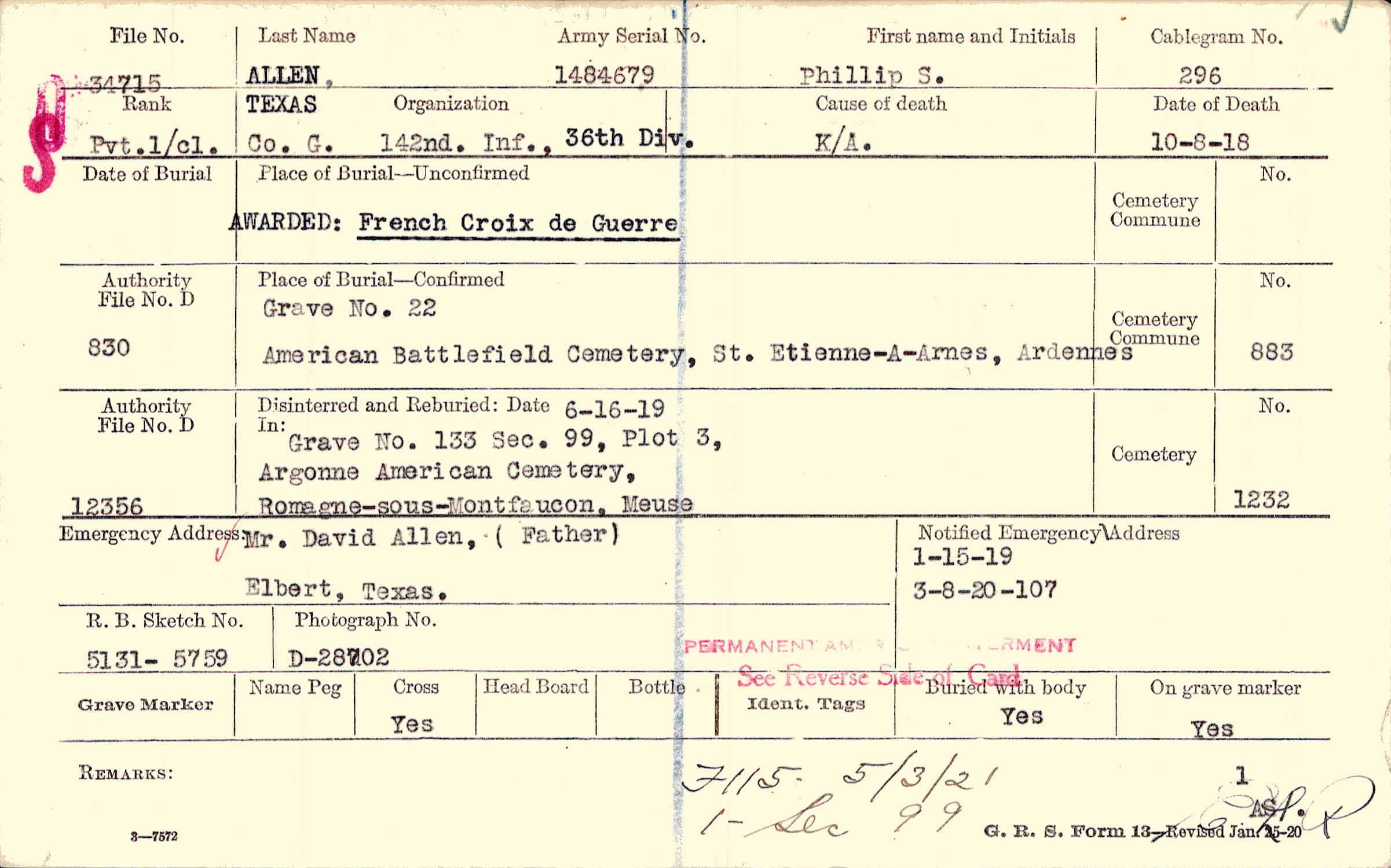 Grave 22, American Battlefield Cemetery, St. Etienne-A-Arnes, Ardennes