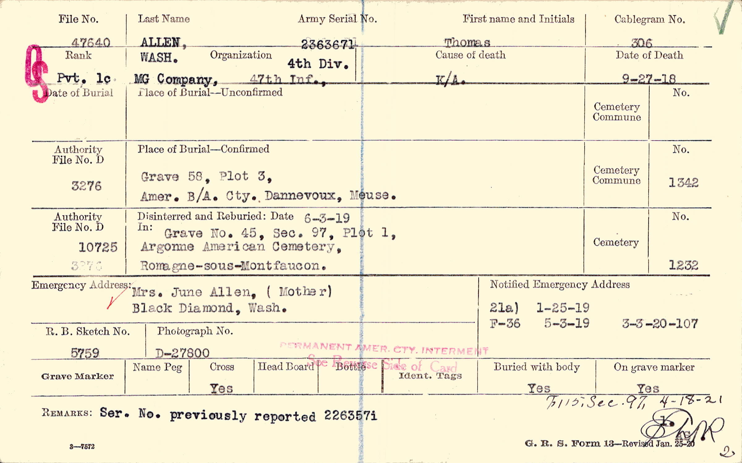 Army Serial No. |