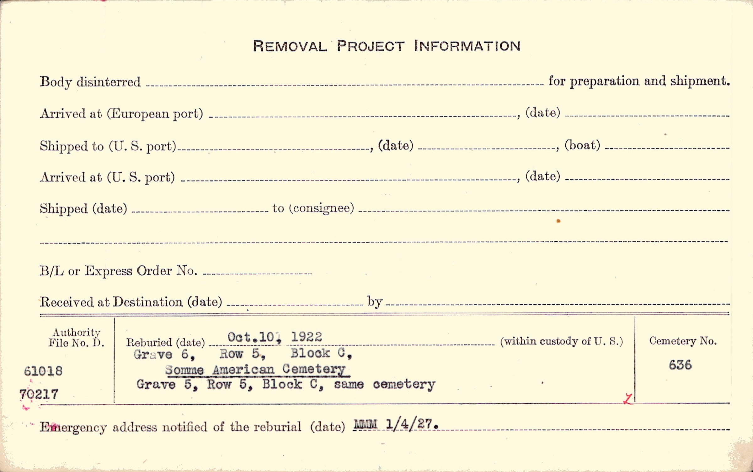 Prior Burial in Foreign Cemetery |