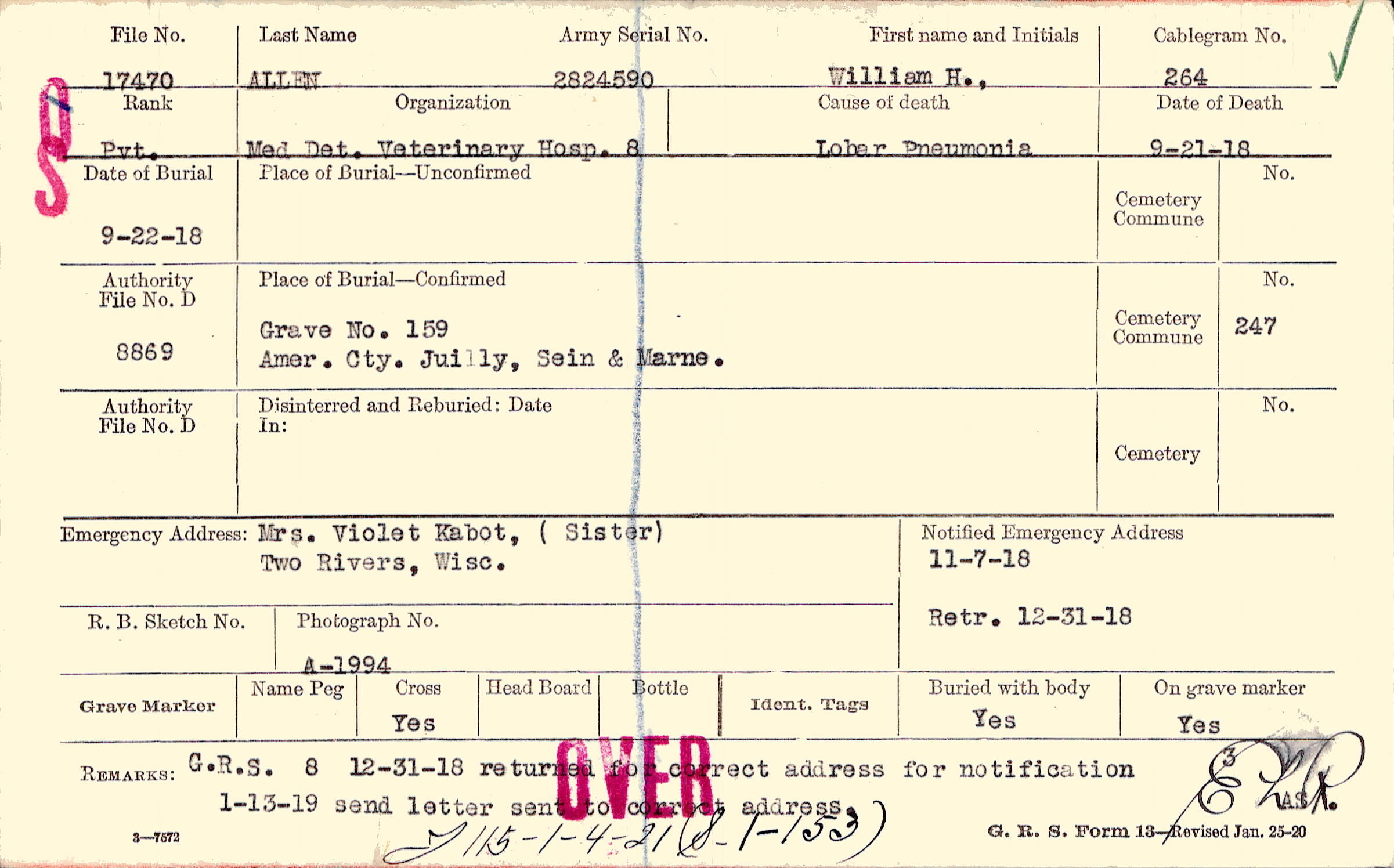 Grave 159, Amer. Cty., Juilly, Sein & Marne.