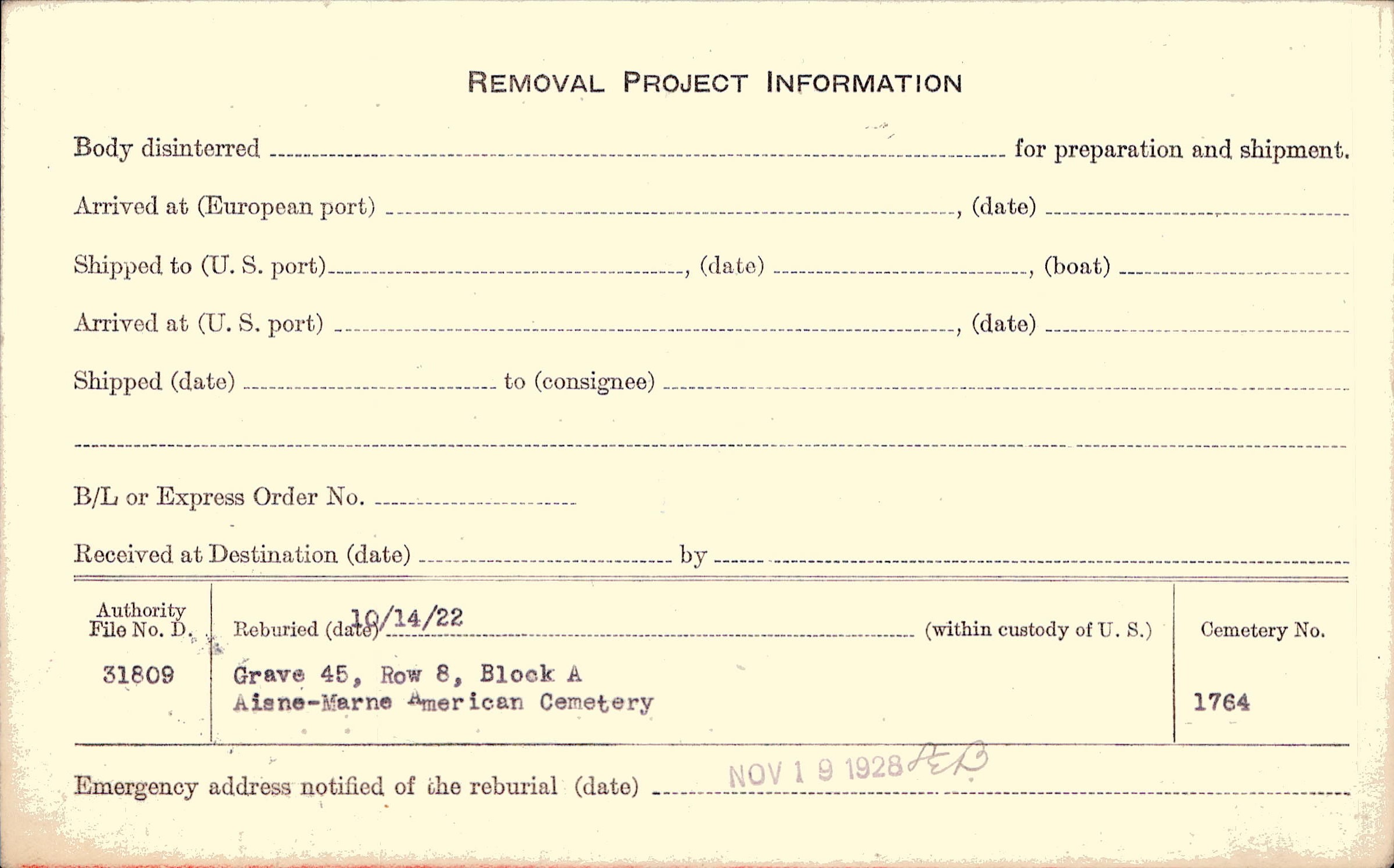 | Reburied (date): |