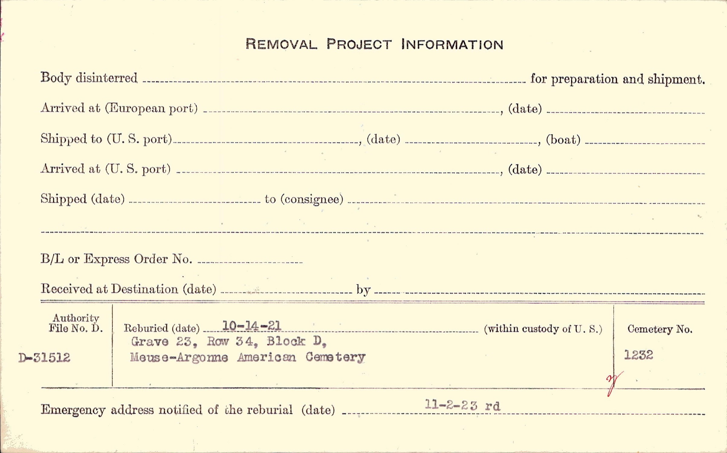 | Permanent Burial in Foreign Cemetery |