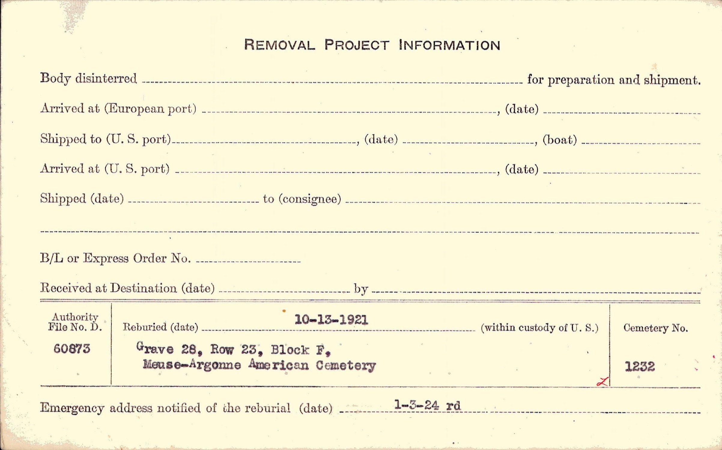 | Permanent Burial in Foreign Cemetery |
