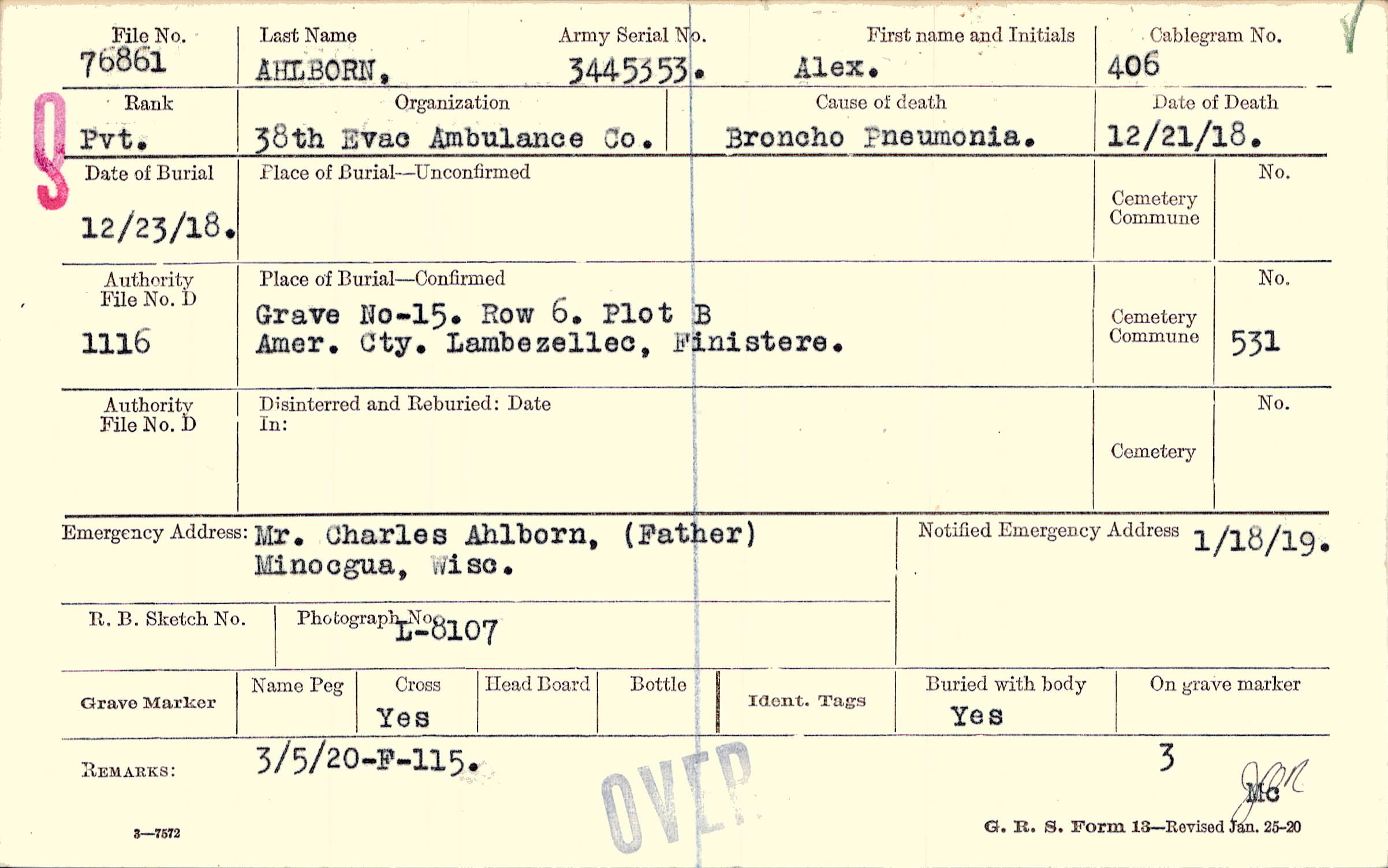 Grave 15, Row 6, Plot B, Amer. Cty., Lambezellec, Finistere.