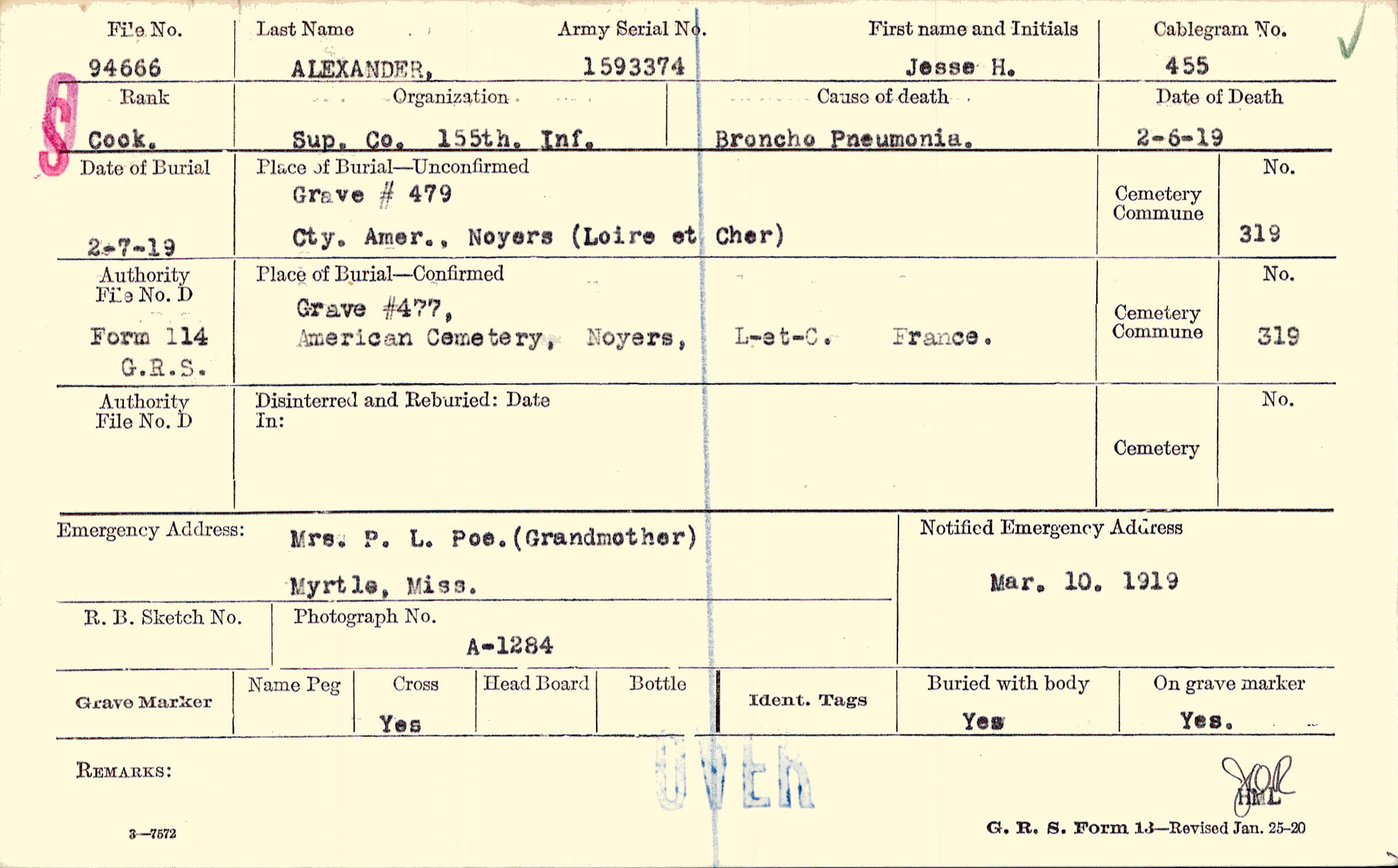 Grave # 479, Cty. Amer., Noyers, Loire et Cher