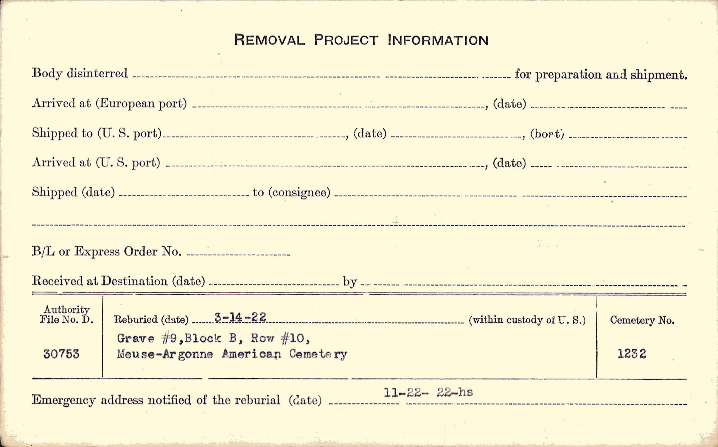 | Permanent Burial in Foreign Cemetery |