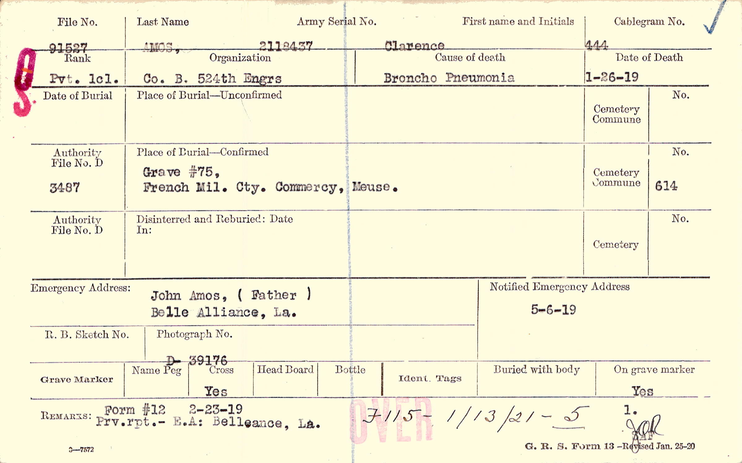Grave #75, French Mil. Cty., Commercy, Meuse