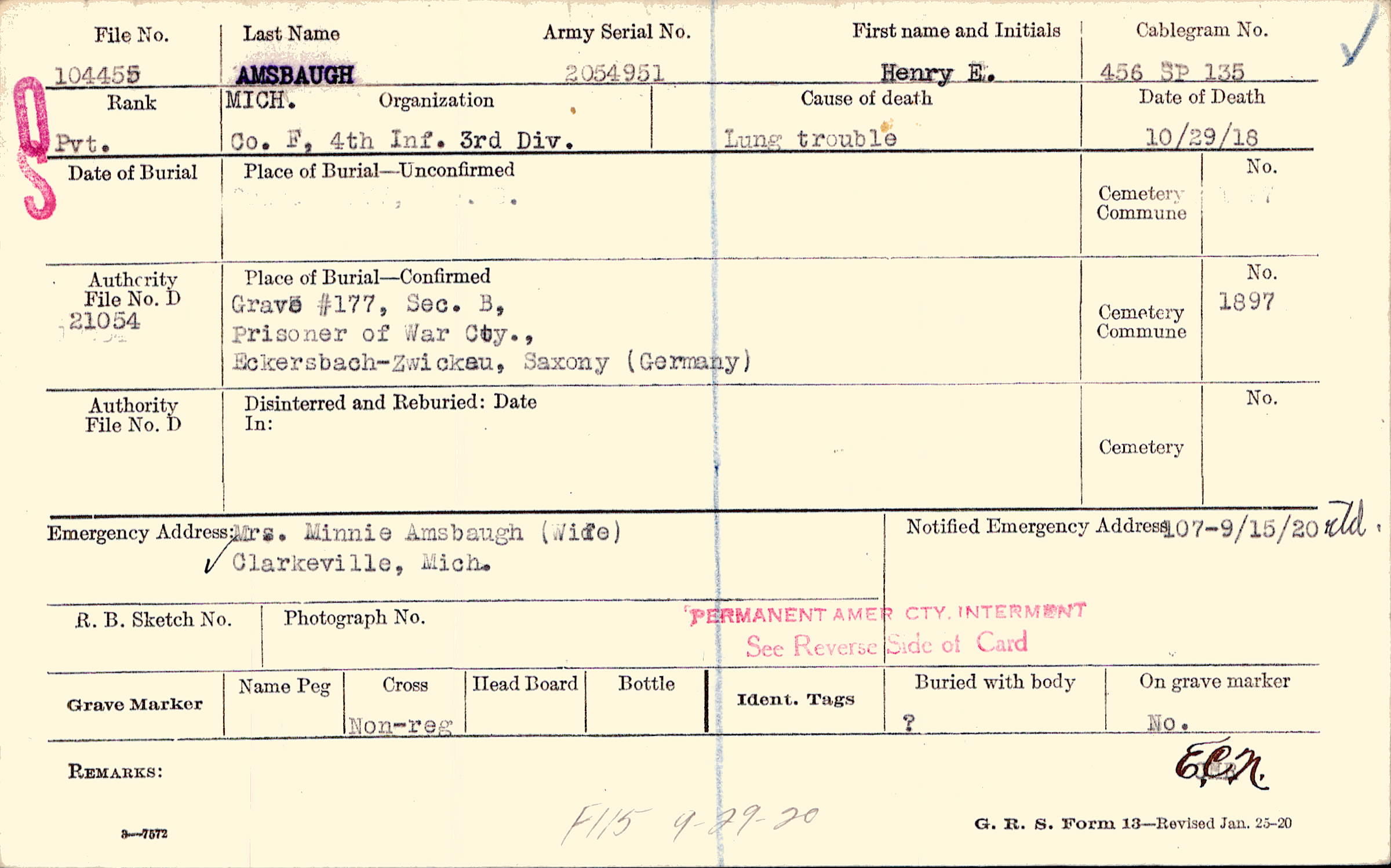 Grave #177, Sec. B, Prisoner of War Cty., Eckersbach-Zwickau, Saxony, Germany