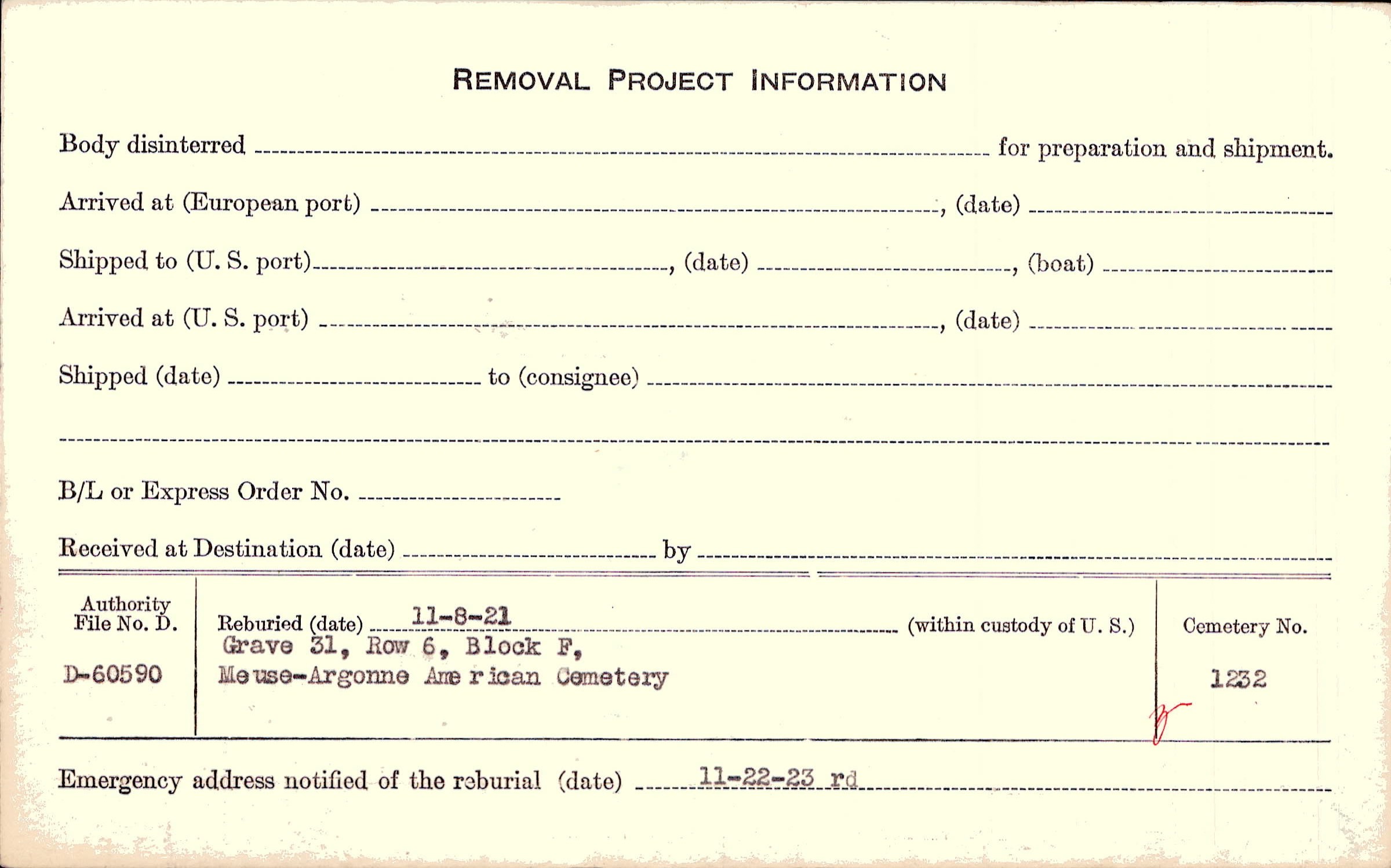| Permanent Burial in Foreign Cemetery |