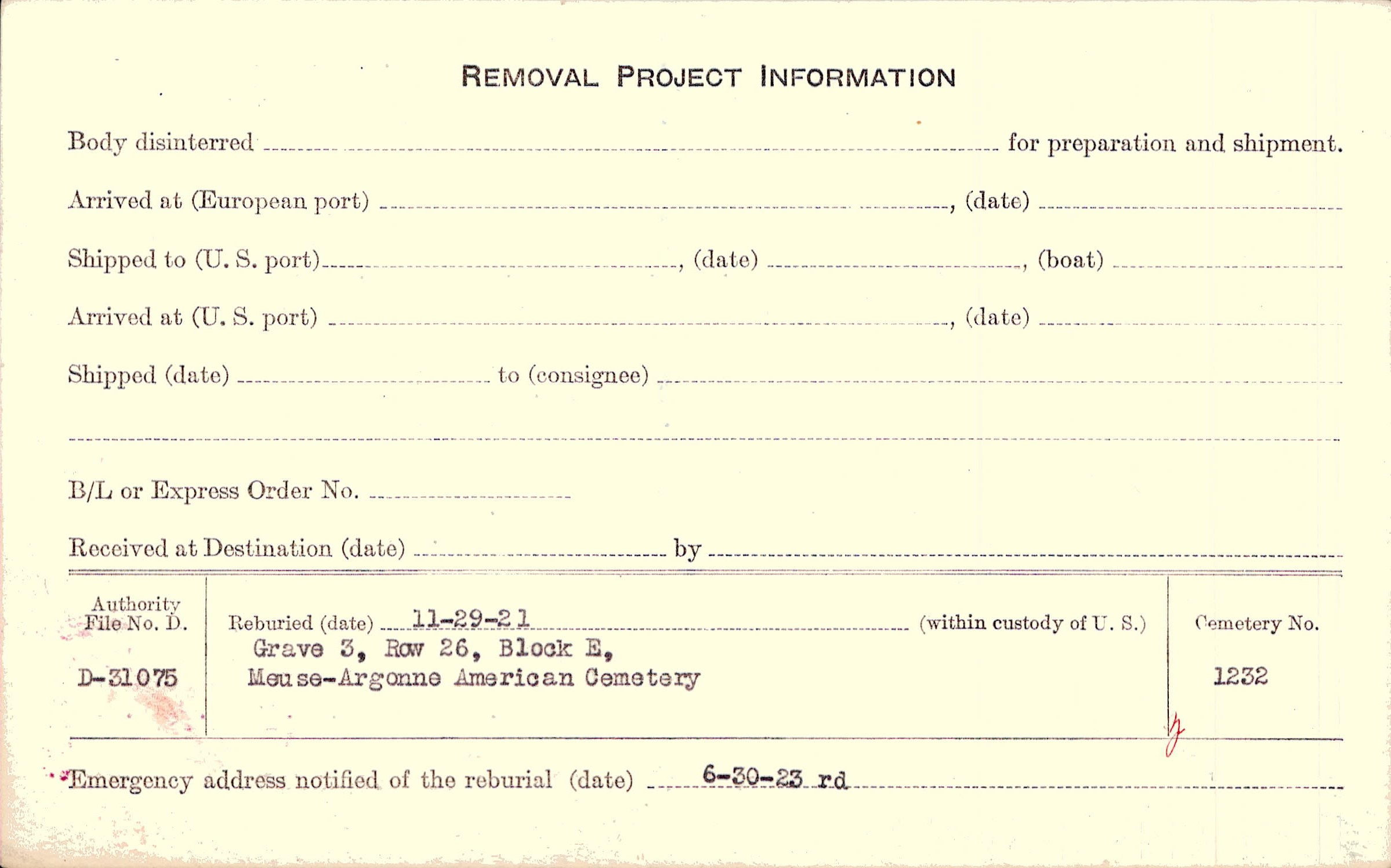 Grave 22, Section 31, Plot 1, Argonne American Cemetery, Romagne-sous-Montfaucon, Meuse
