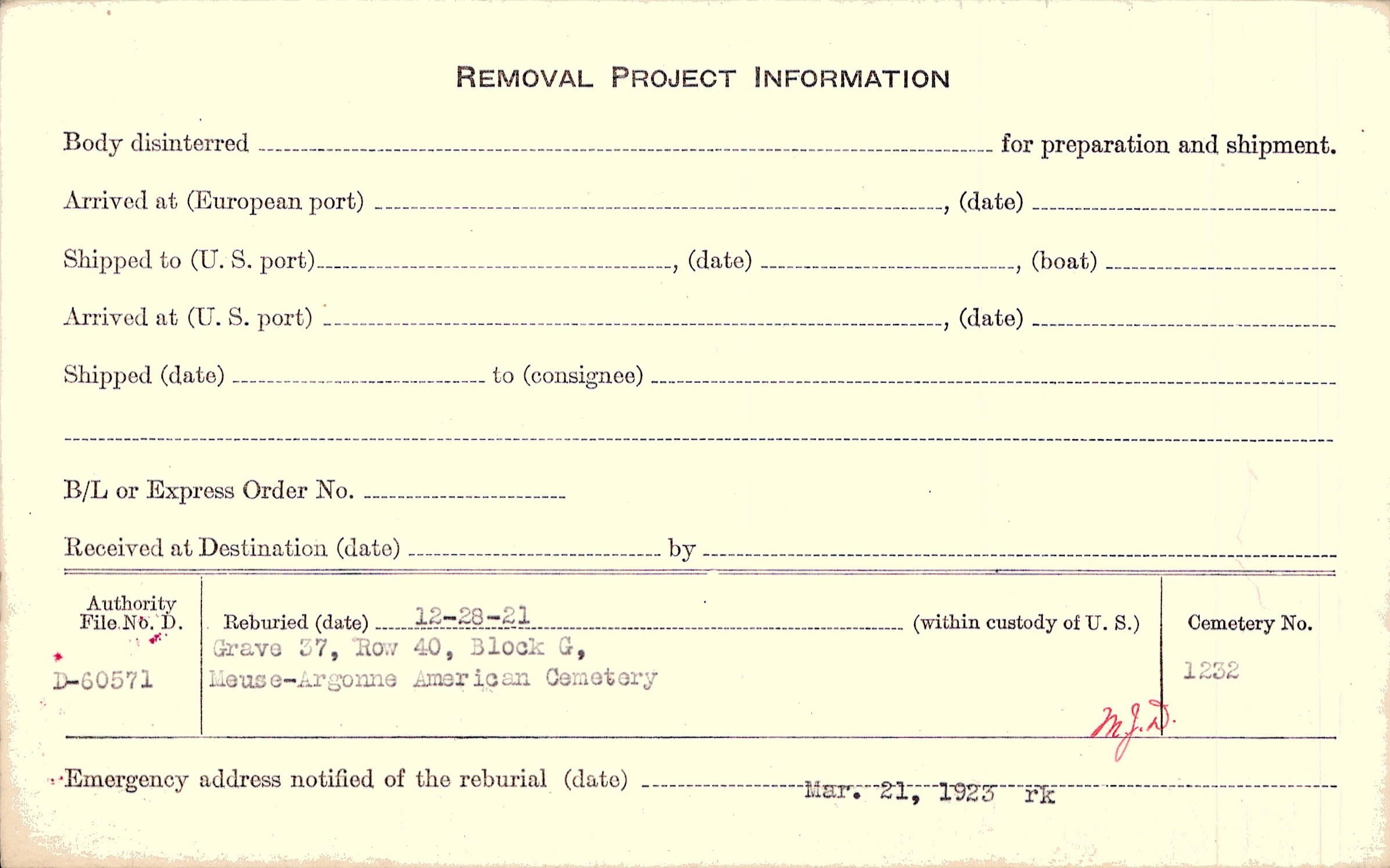 Grave #10, Plot B, Amer. Cty., Rampont, Meuse.