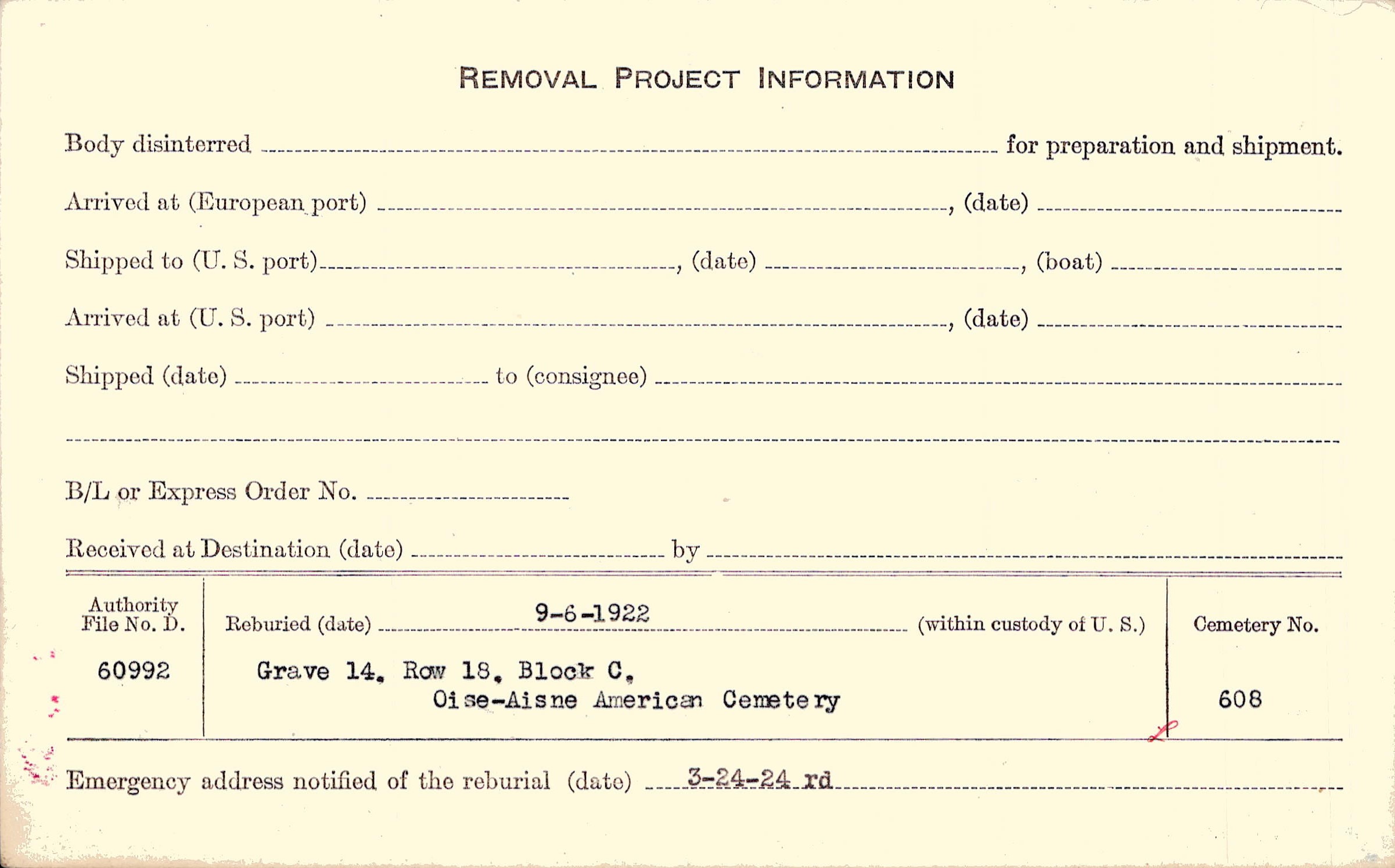 | Permanent Burial in Foreign Cemetery |
