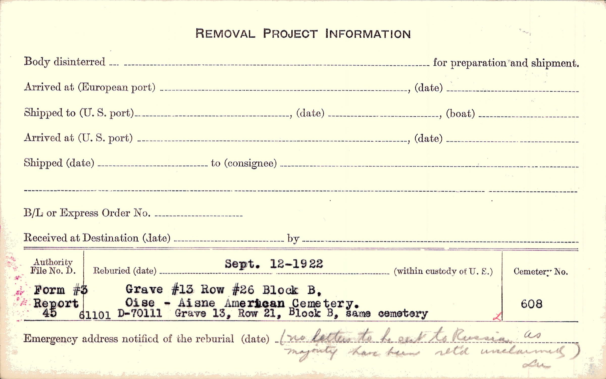 Prior Burial in Foreign Cemetery |