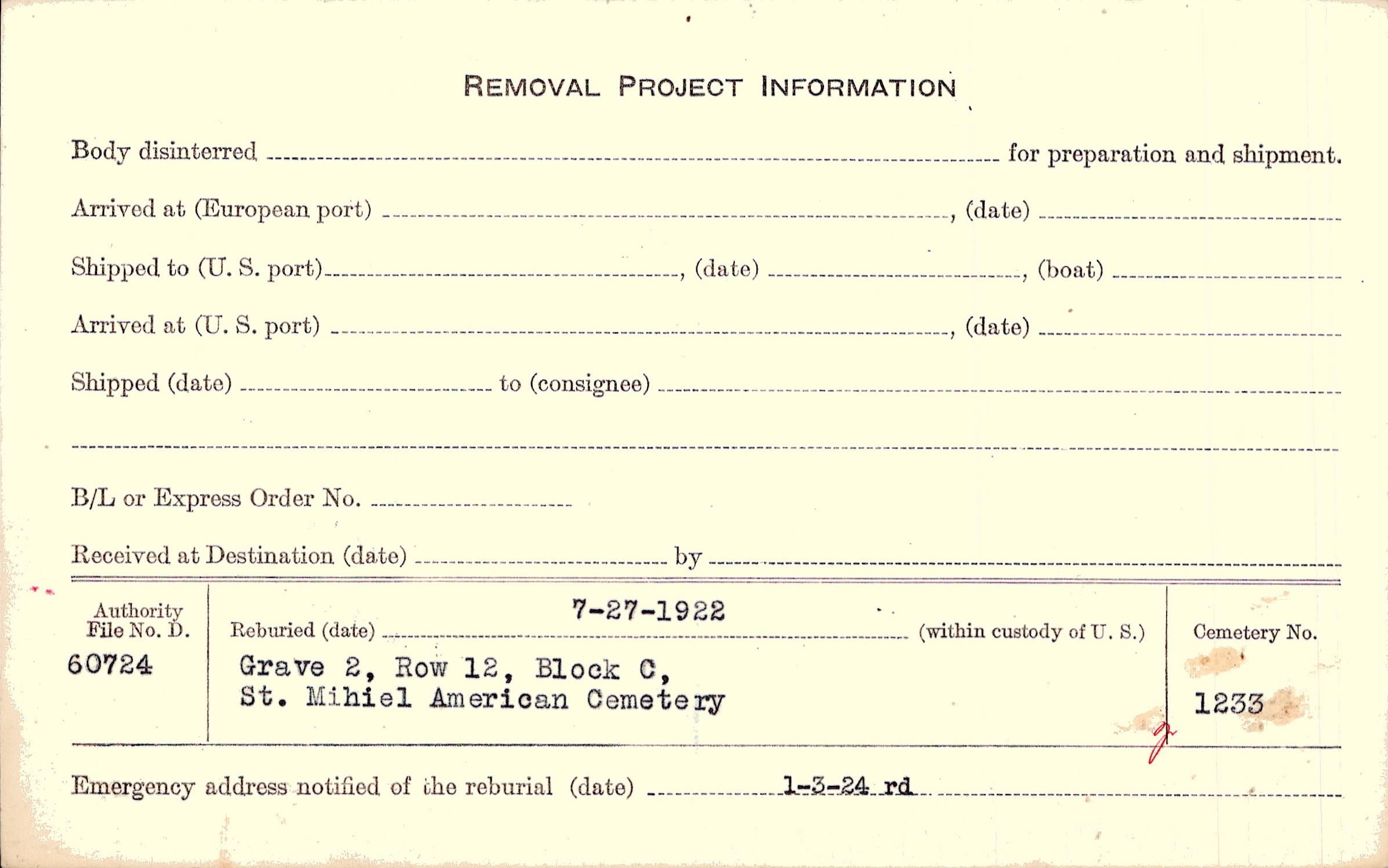 | Permanent Burial in Foreign Cemetery |
