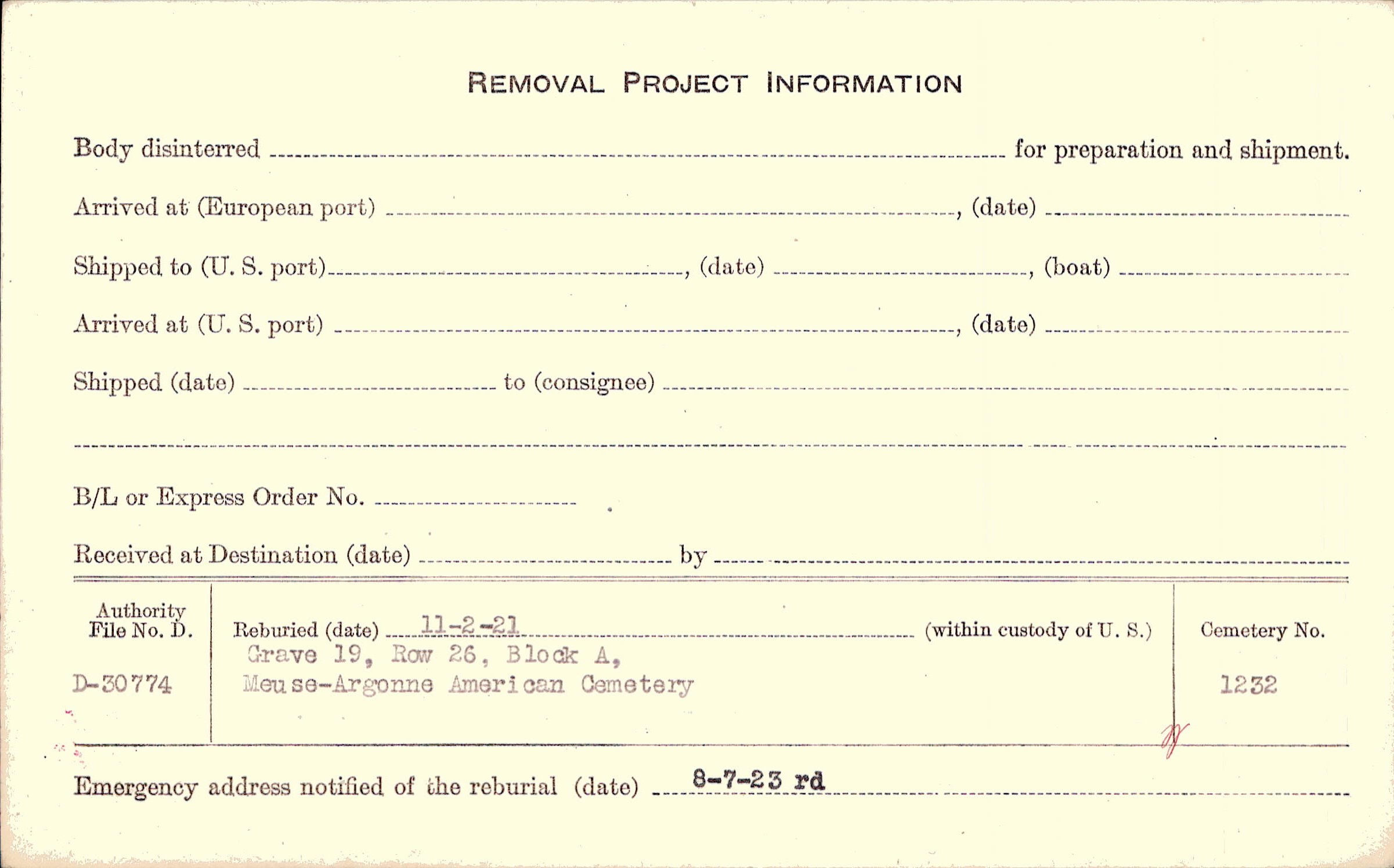 | Reburied (date): |