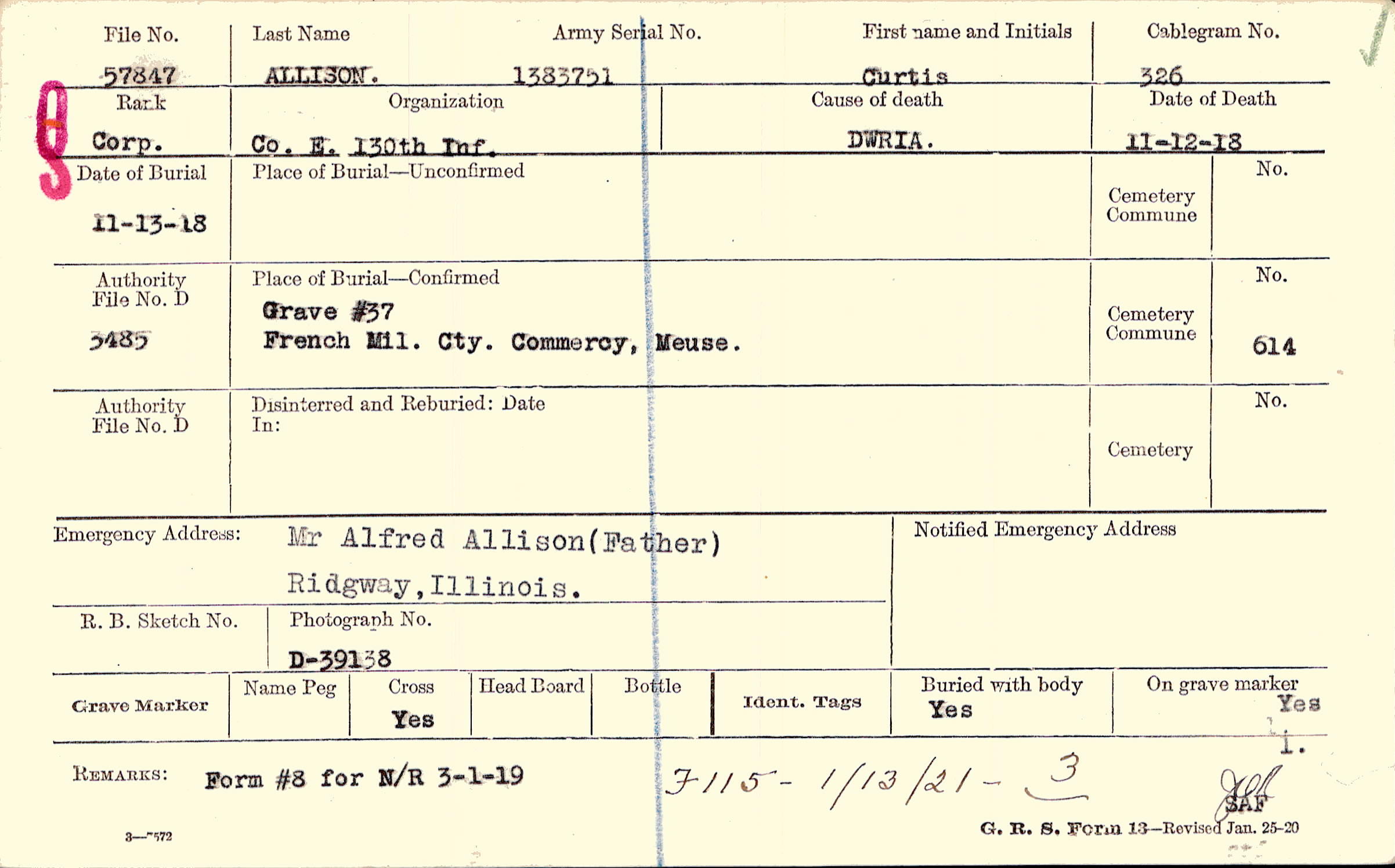 Grave #37, French Mil. Cty., Commercy, Meuse