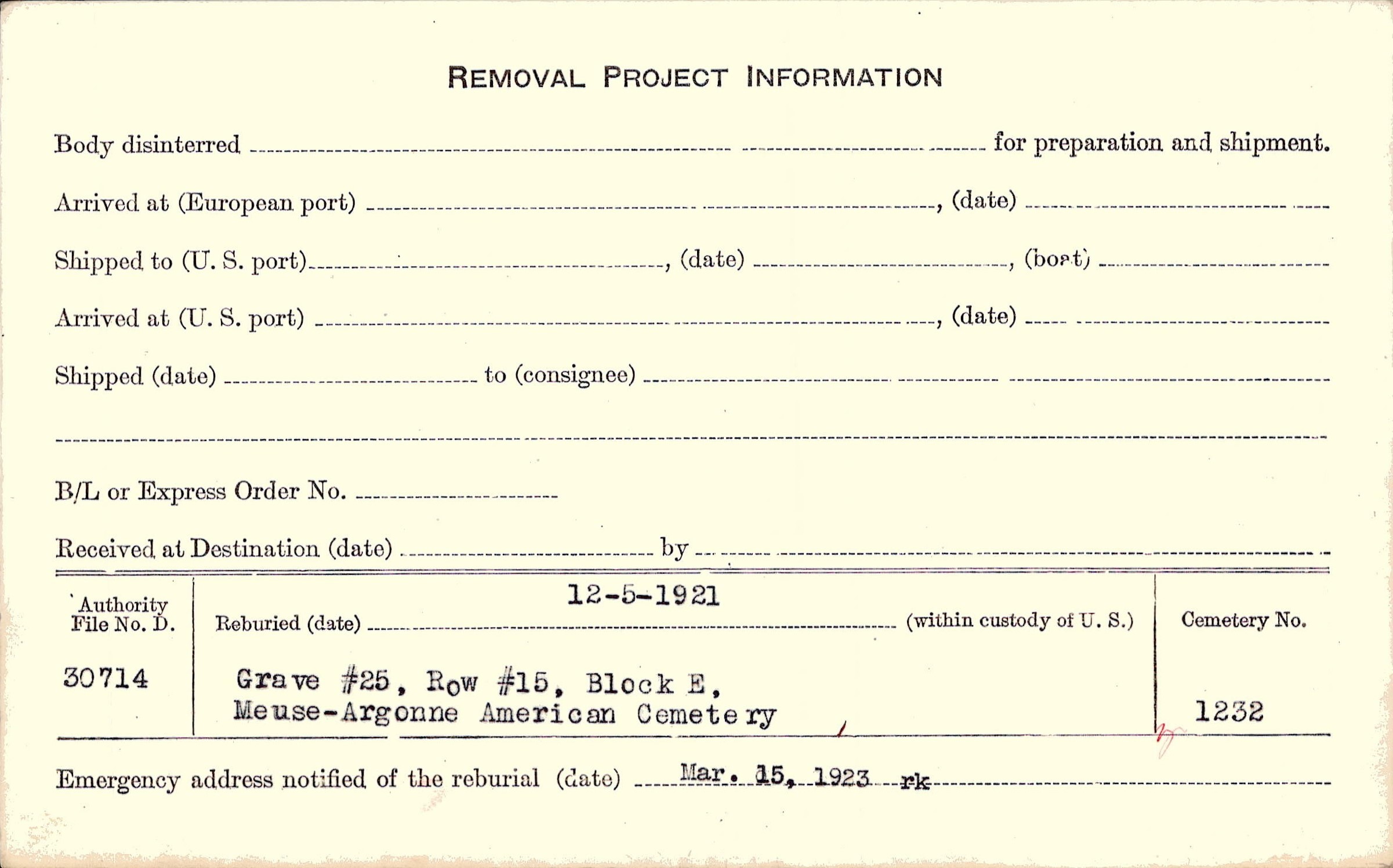 | Permanent Burial in Foreign Cemetery |