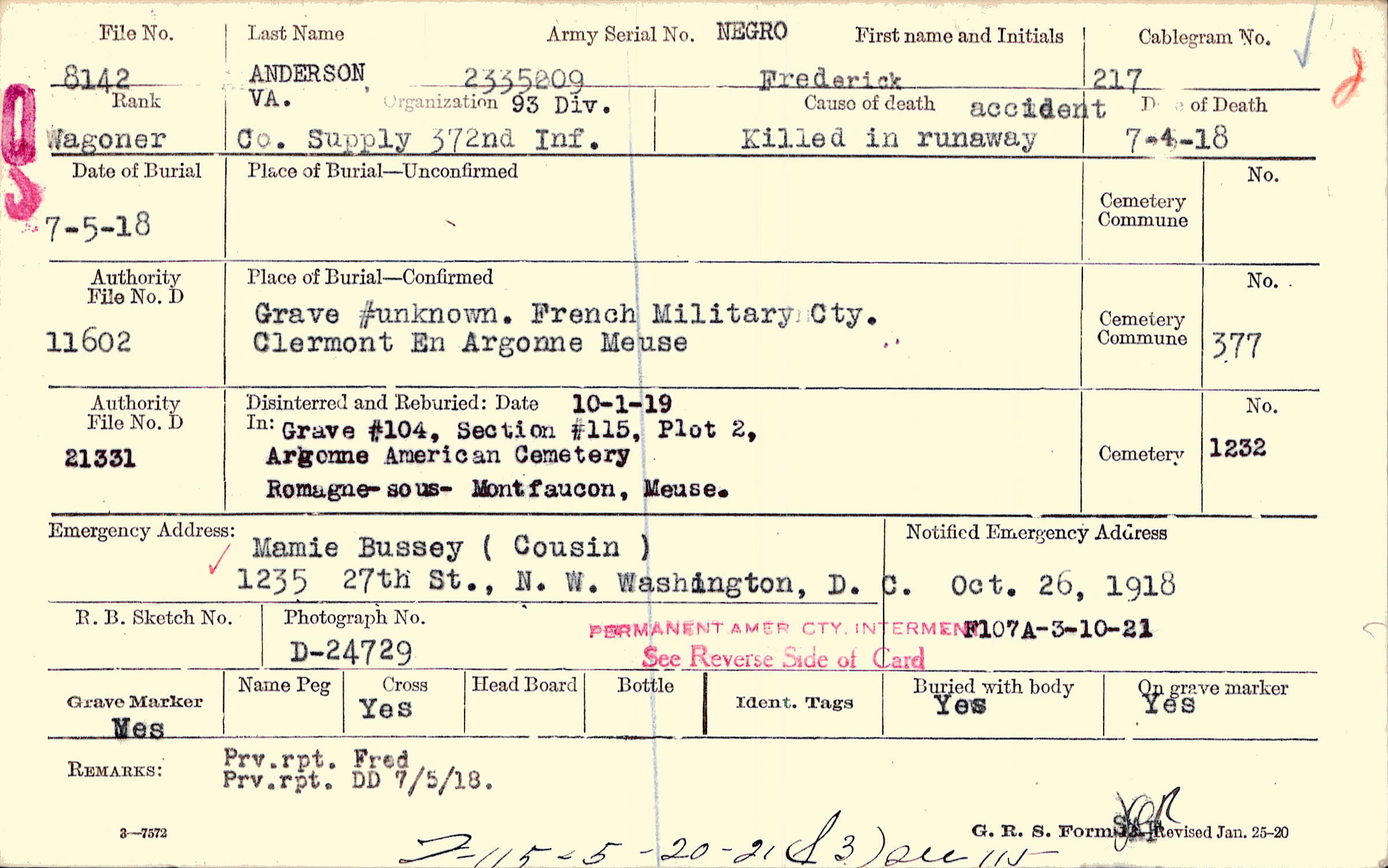 Grave 104, Section 115, Plot 2, Argonne American Cemetery, Romagne-sous-Montfaucon, Meuse