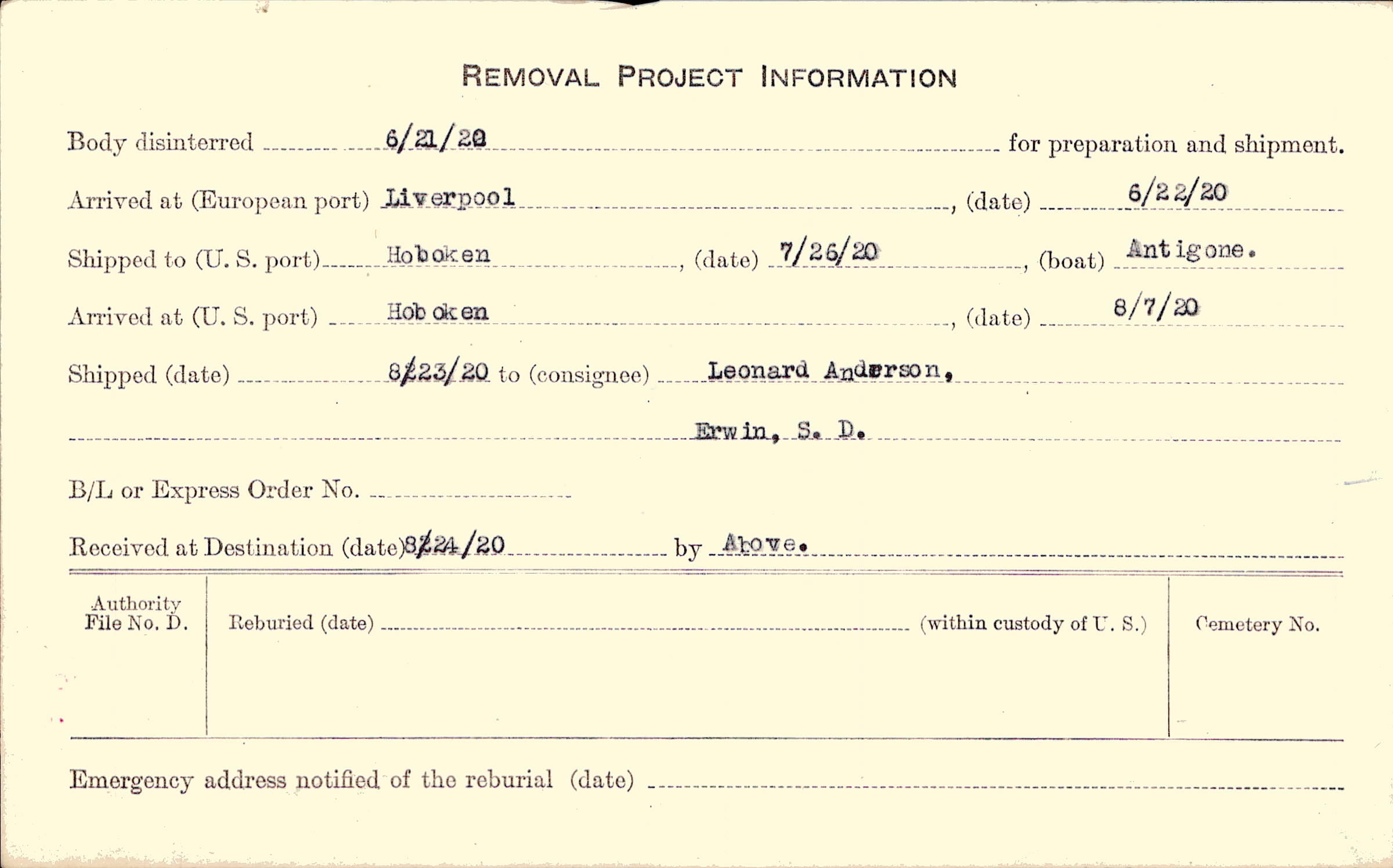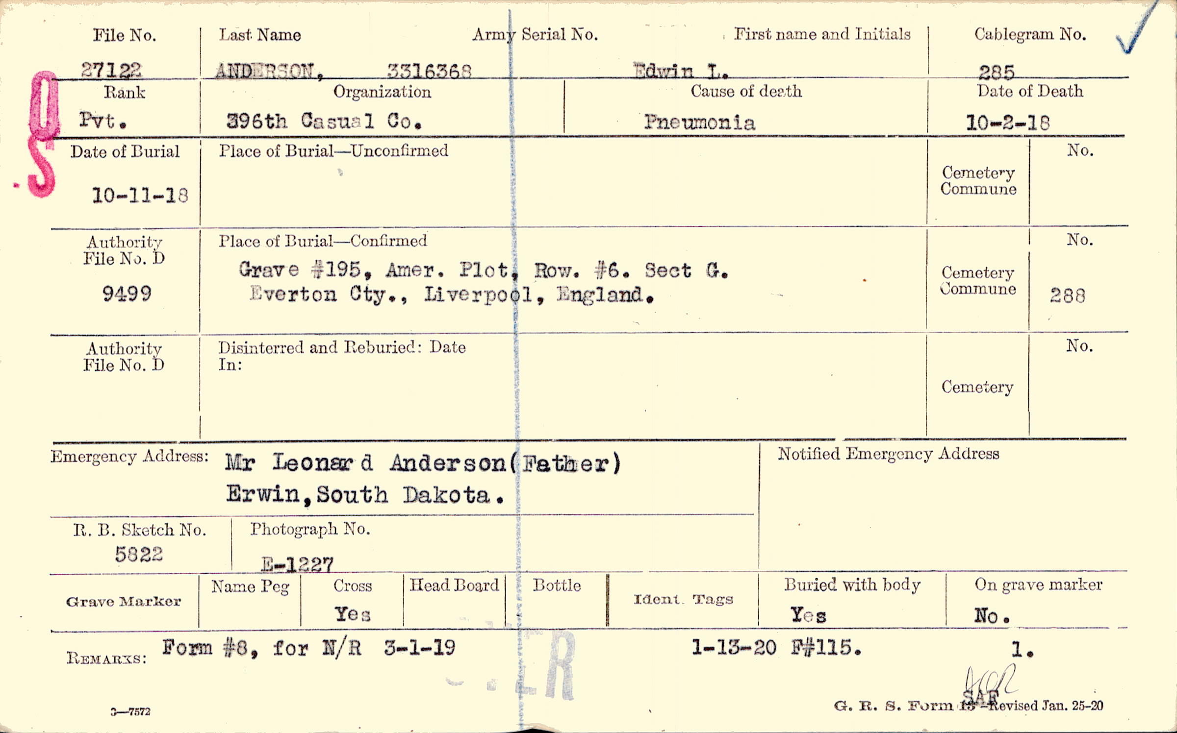 Grave #195, Amer. Plot, Row #6, Sect. G, Everton Cty., Liverpool, England